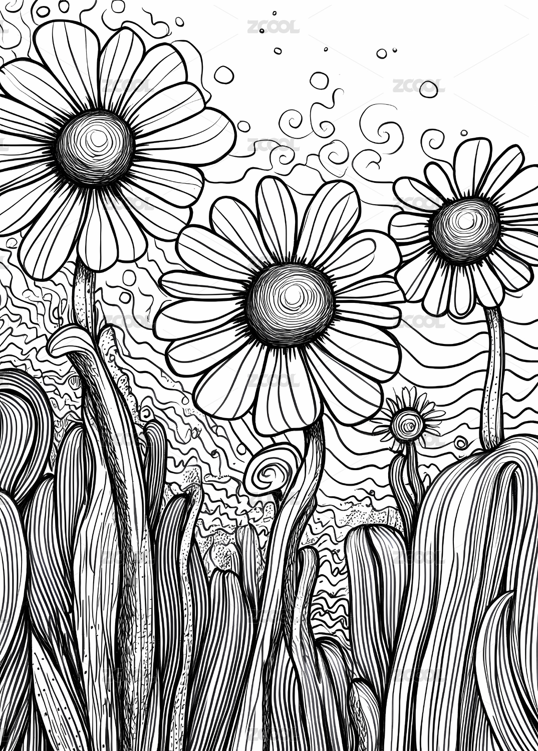 彩色线条向日葵插画