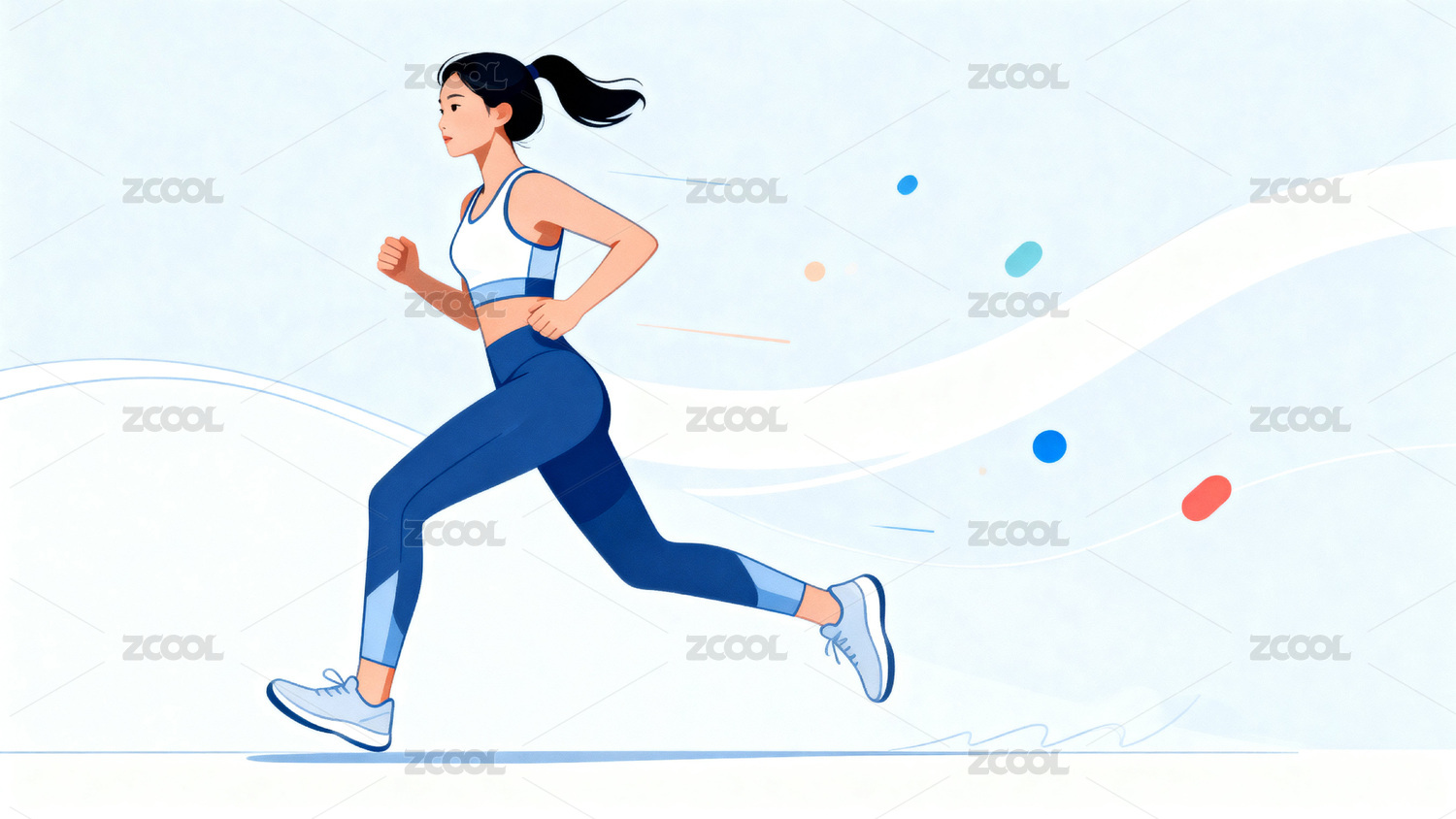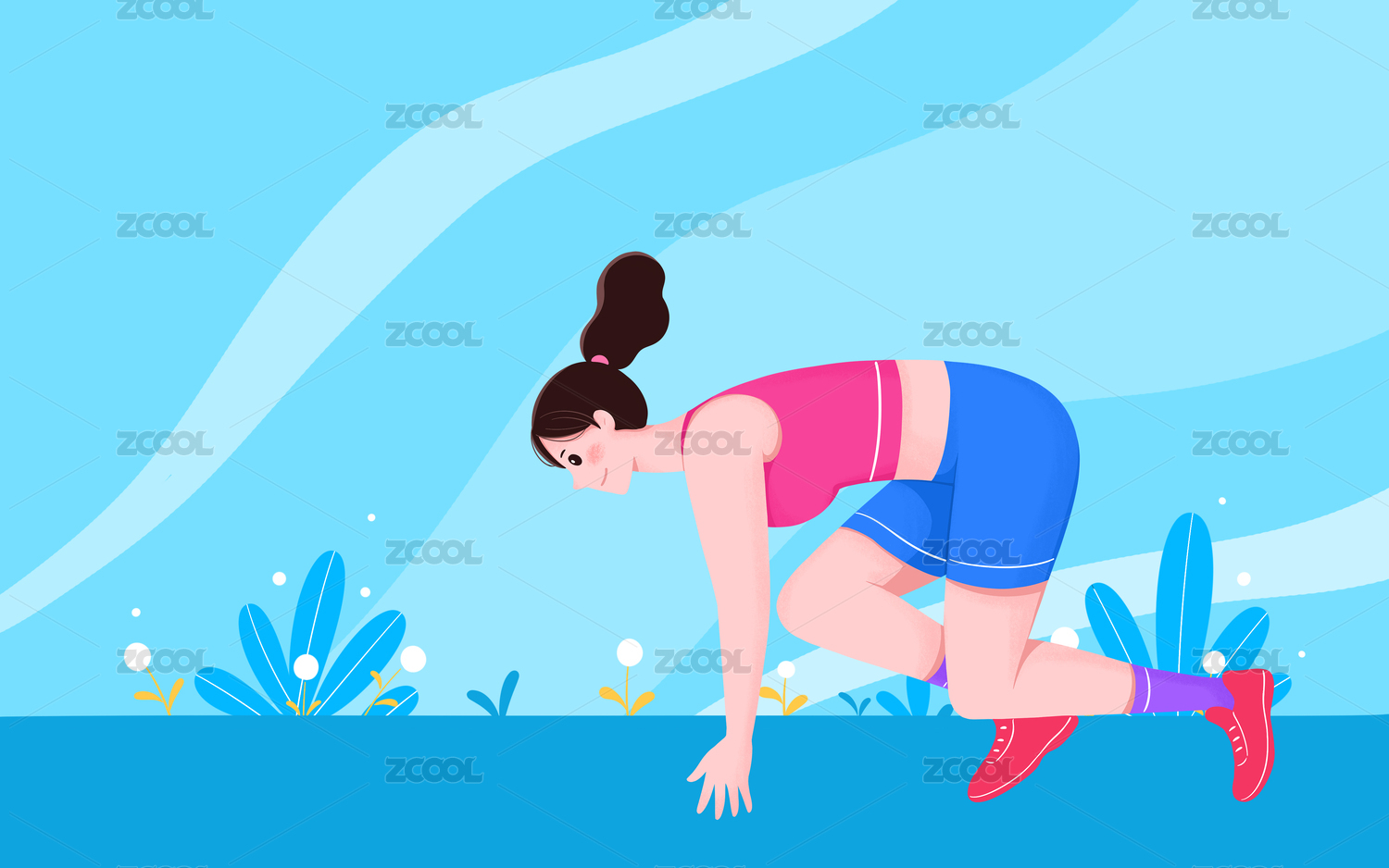 夏天女孩跑步运动减肥插画户外锻炼健身海报