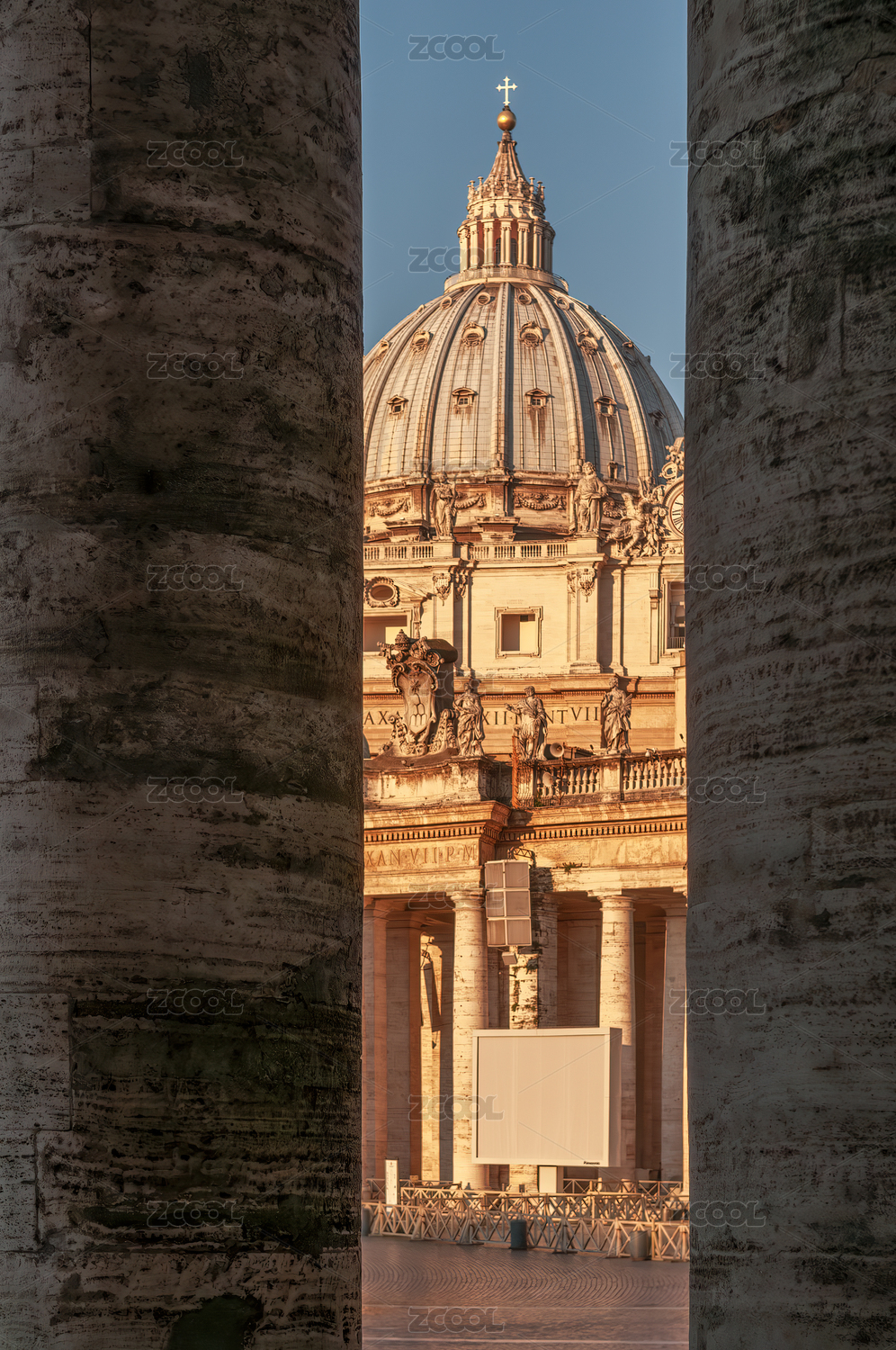 欧洲梵蒂冈城圣彼得大教堂广场清晨