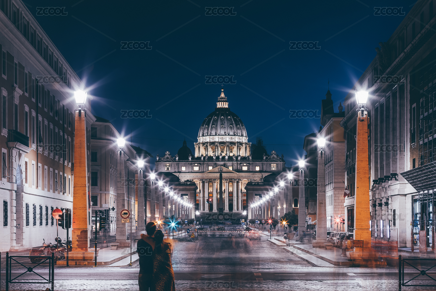 意大利罗马梵蒂冈圣彼得大教堂清晨日出