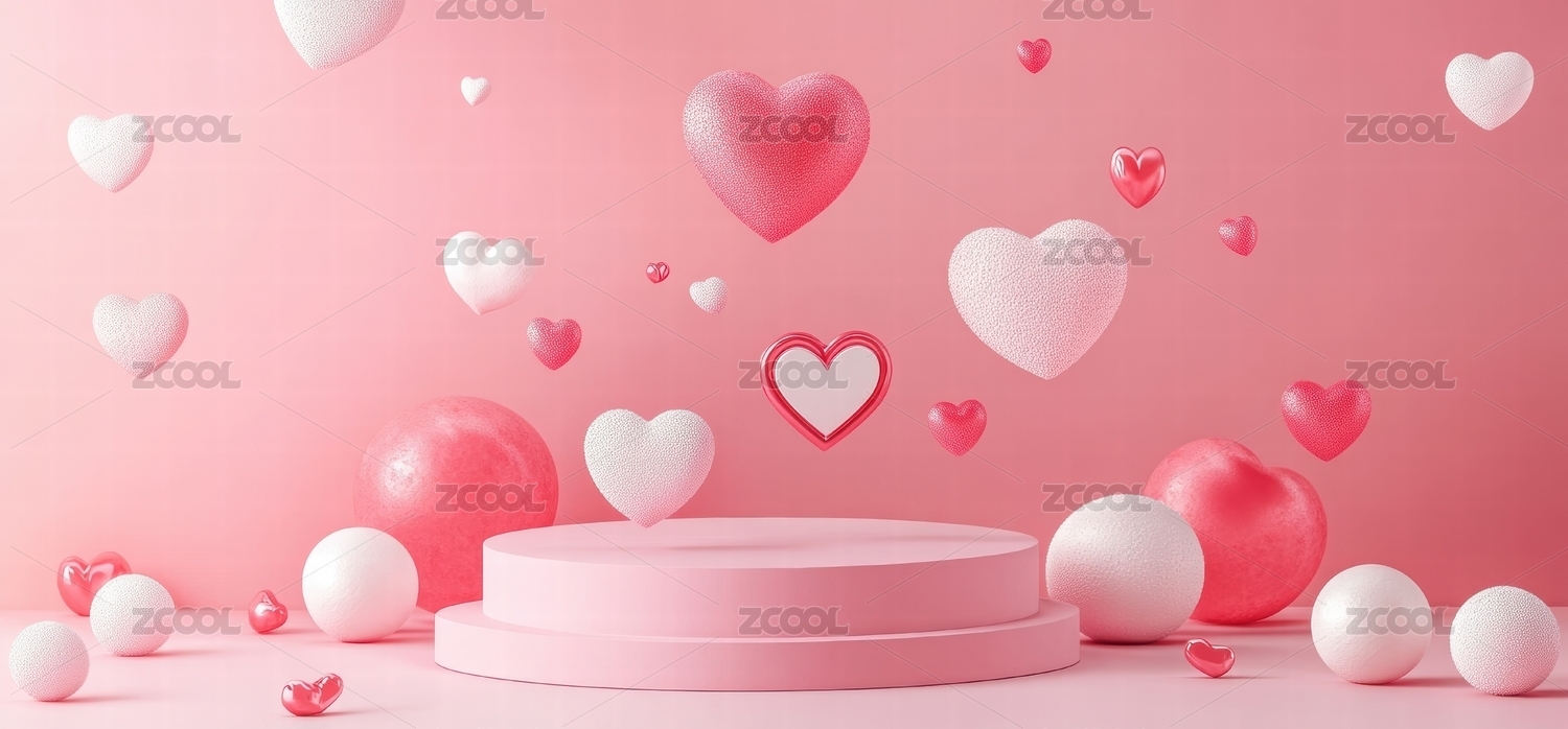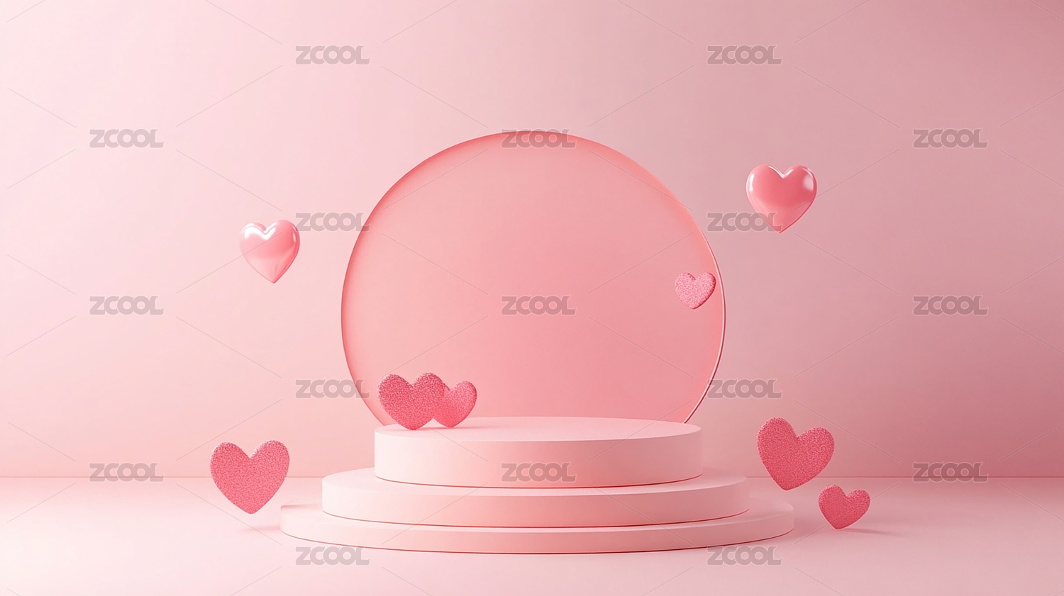 产品展台,爱心,粉色,圆形,发光,光,舞台,室内,现代,展览