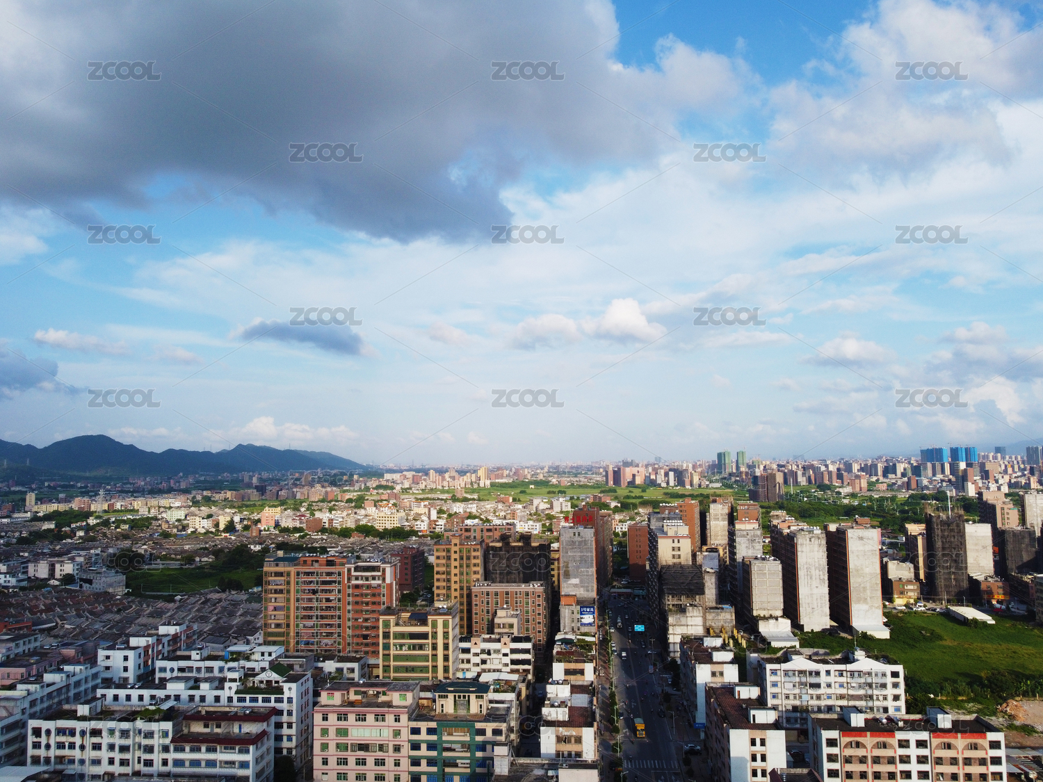 蓝天白云下的中国深圳城市郊区住宅建筑群风光