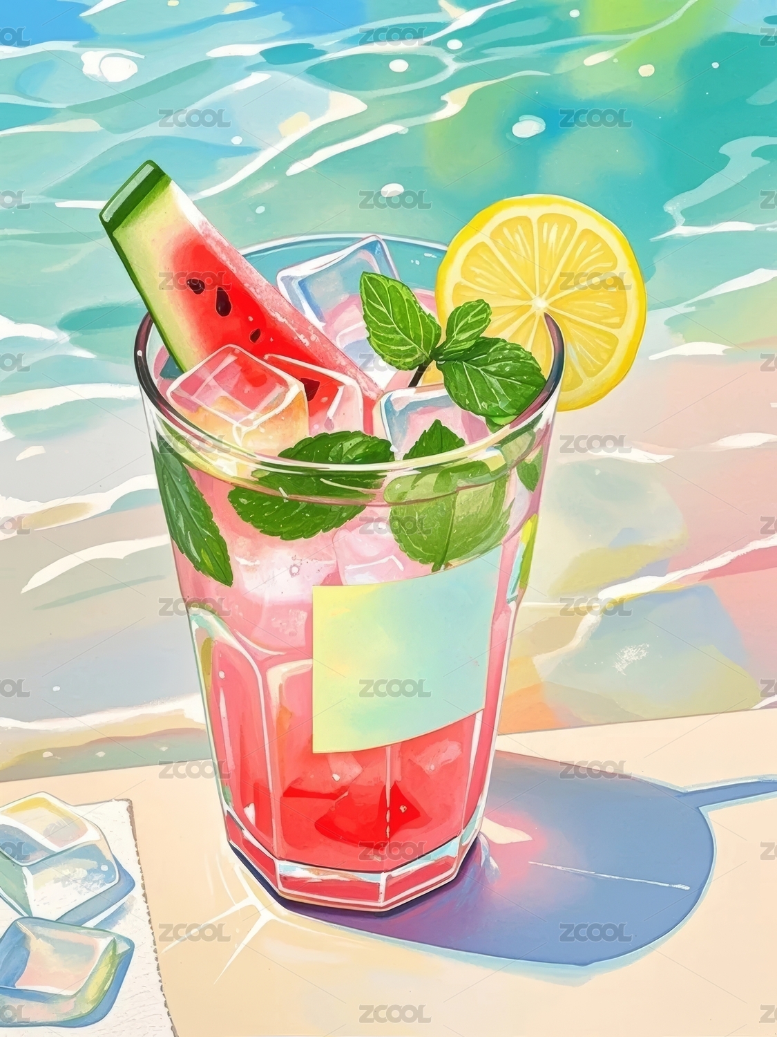 冷饮,饮料,饮品,夏日,水果,果汁,薄荷,冰块,食物,海边