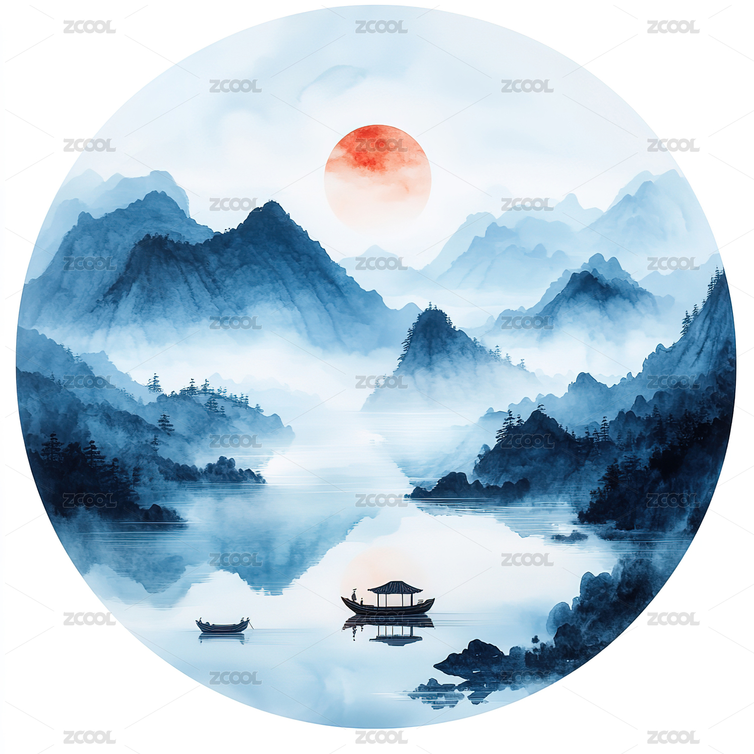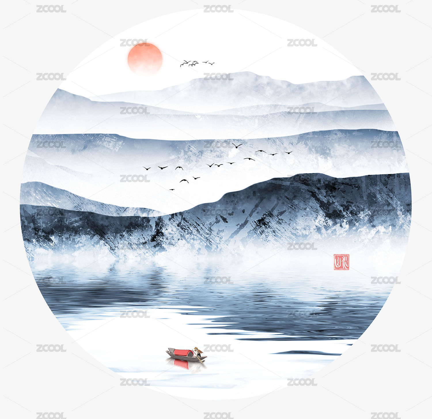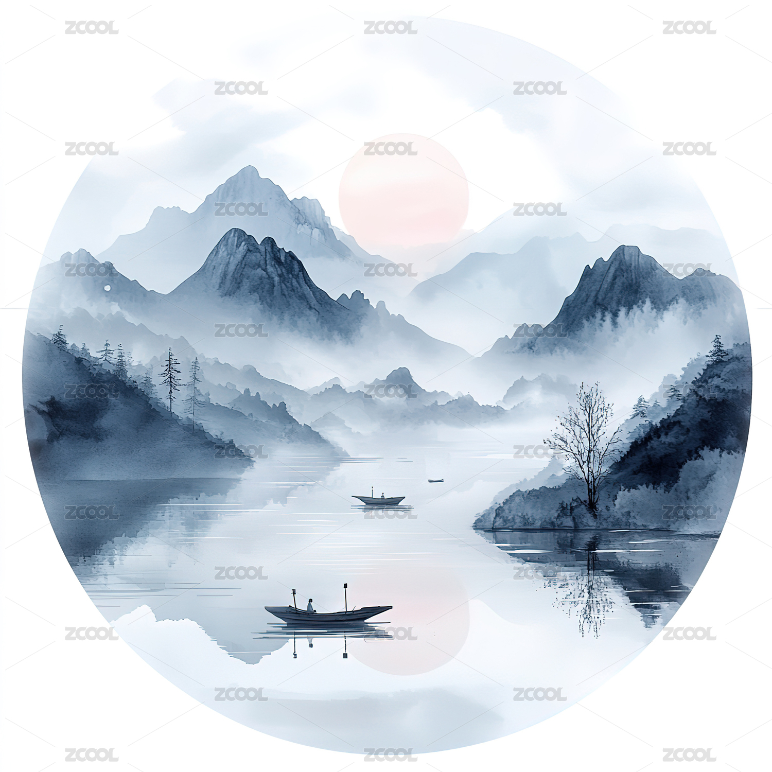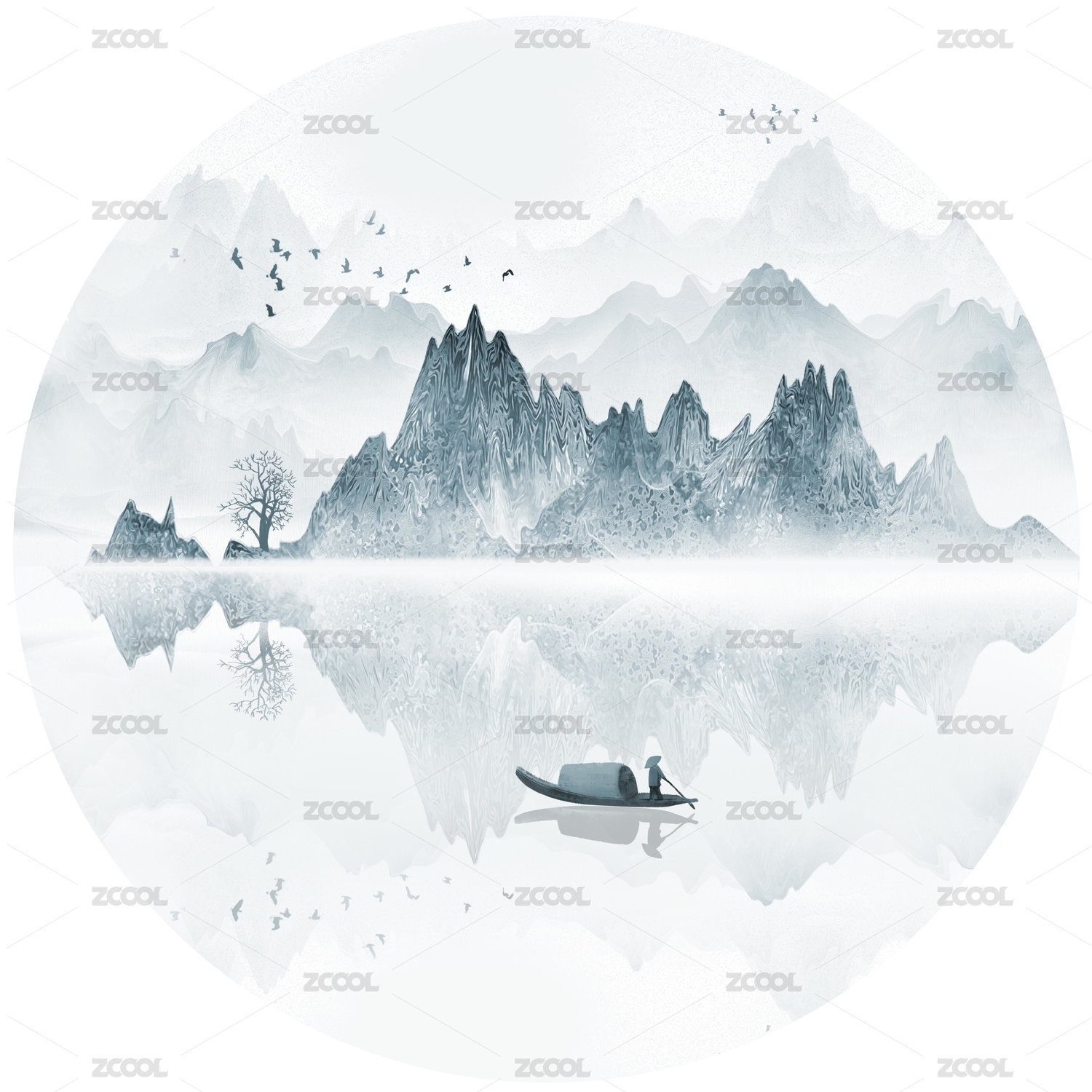 山水画,中式,水墨,国潮,春天,淡雅,山水,禅意,水墨禅,山水装饰