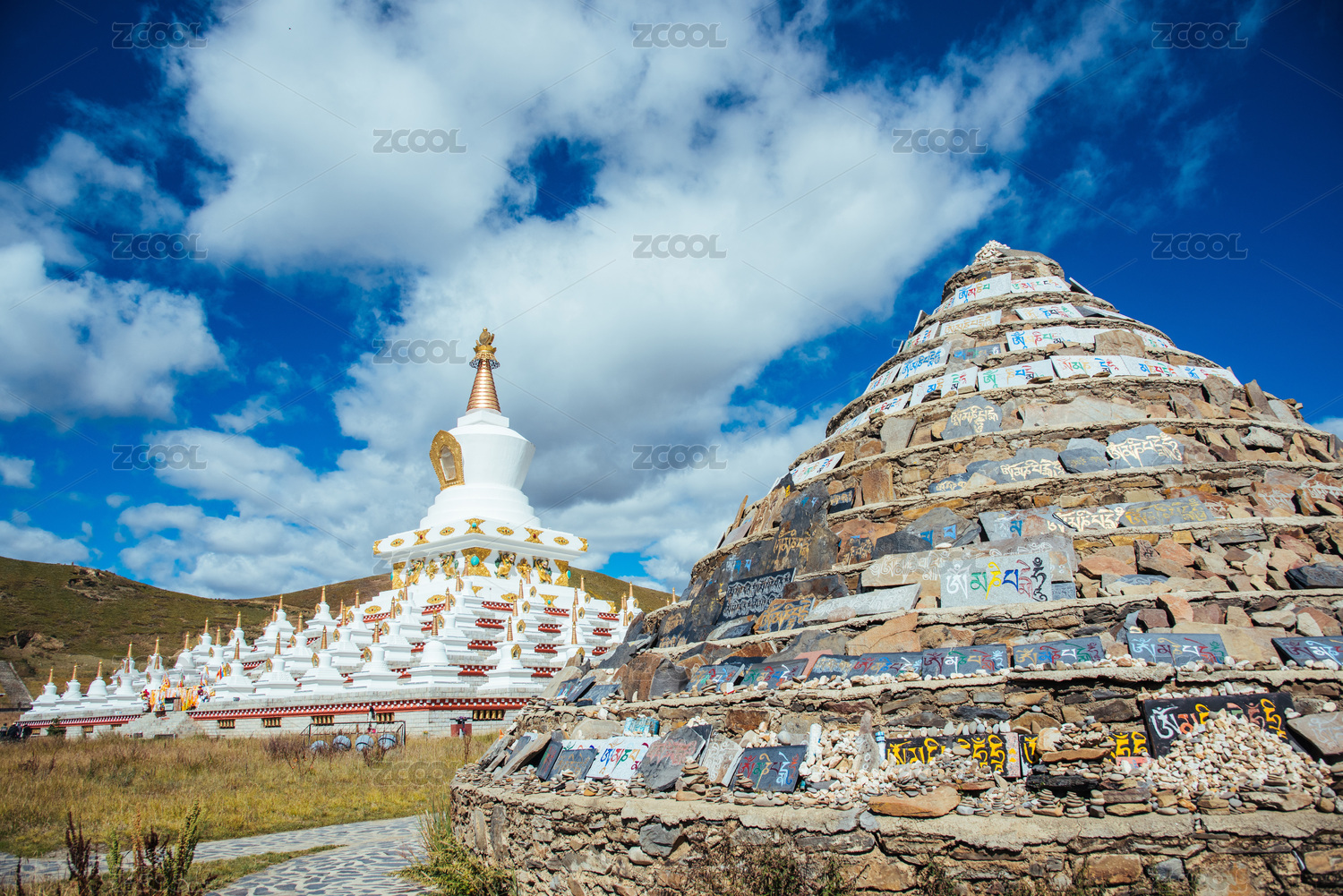 夏季四川川西高原甘孜县城香根时轮佛塔