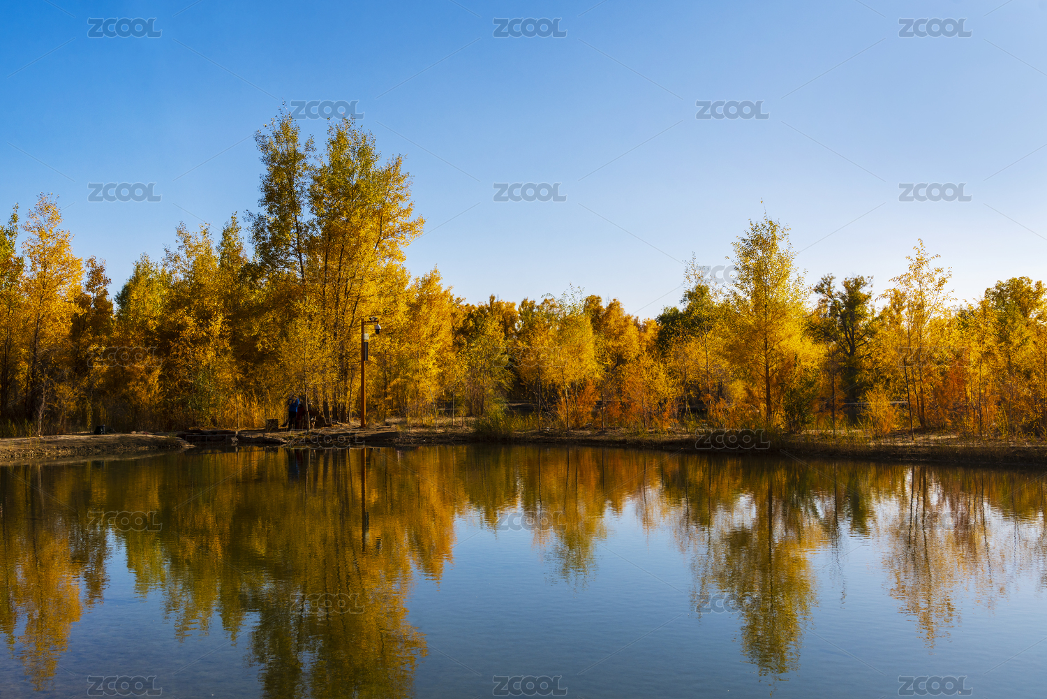 甘肃酒泉金塔胡杨林秋季湖边金色胡杨