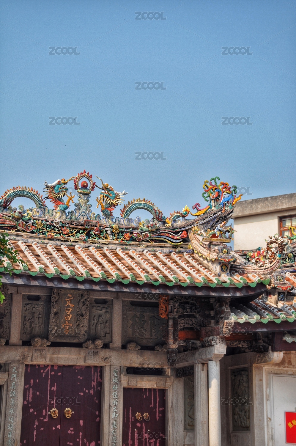 中国广东省佛山顺德鸣石花园岭南古建筑屋顶