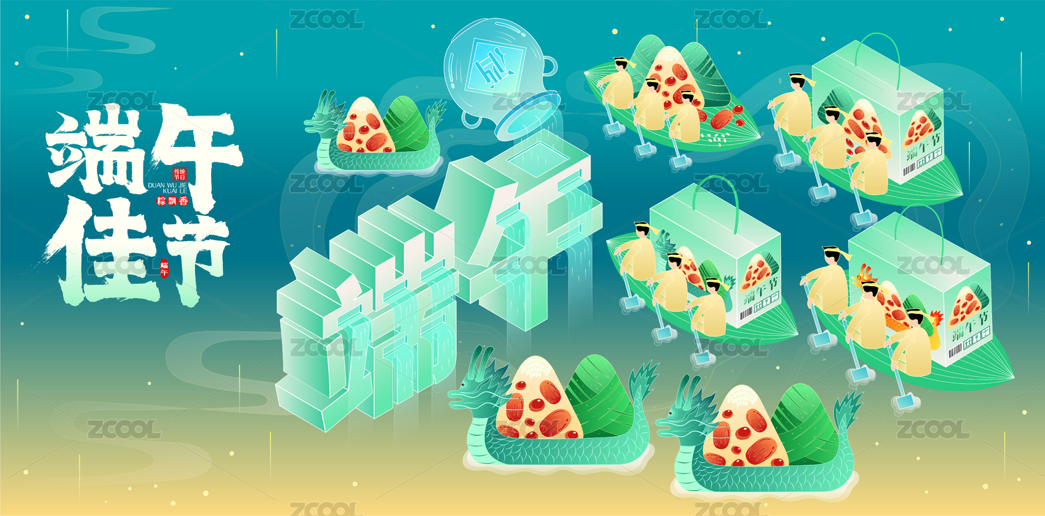 端午节快乐吃粽子传统节日美食食物国潮插画