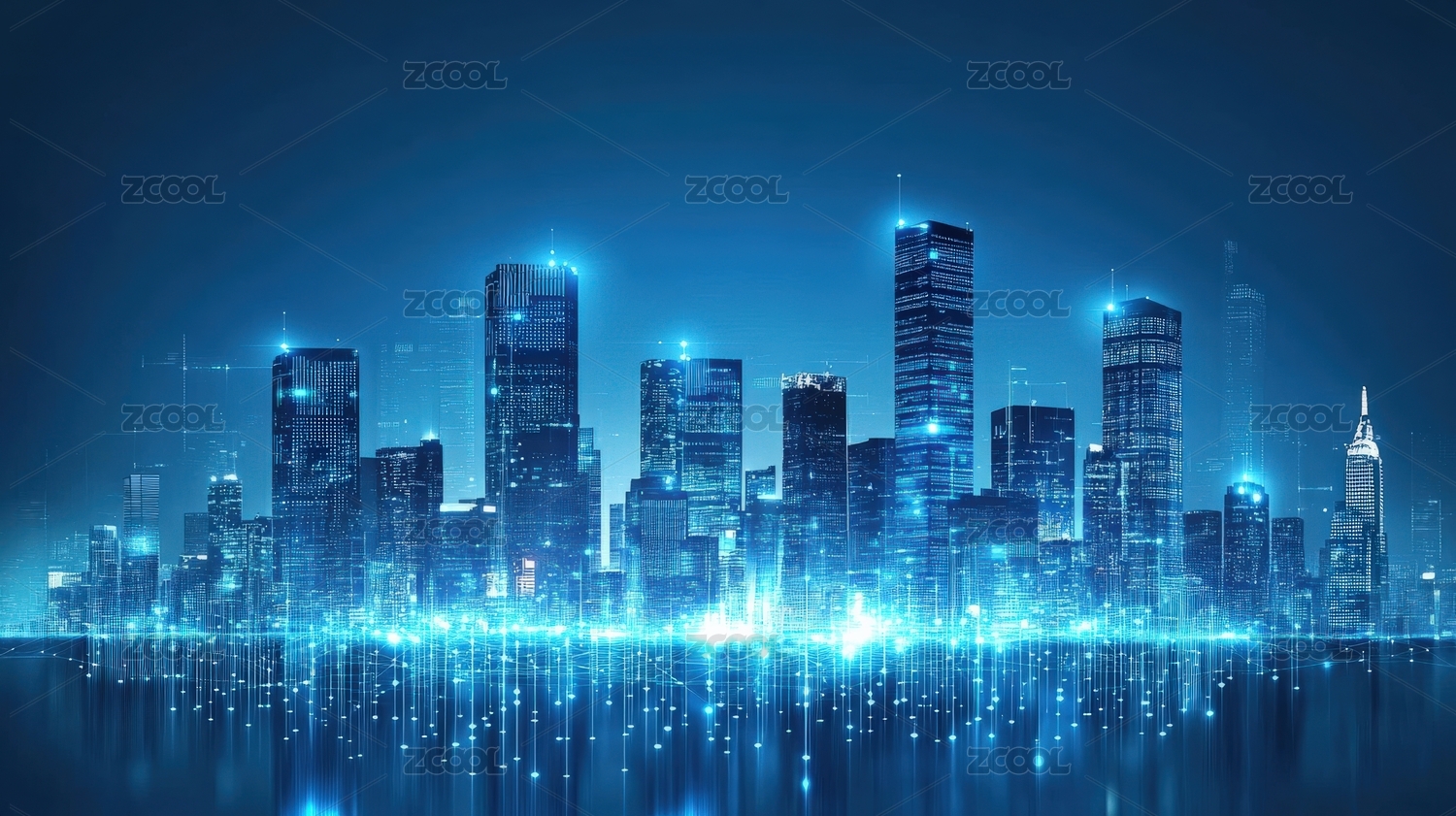 夜幕下的蓝色城市天际线