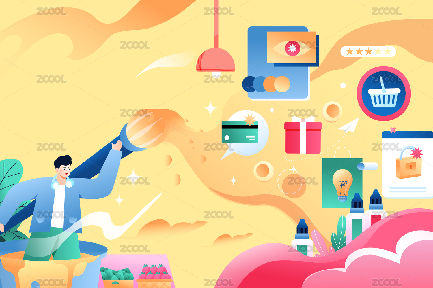 卡通,渐变,扁平,插画,插图,背景,元素,矢量,活动,电商