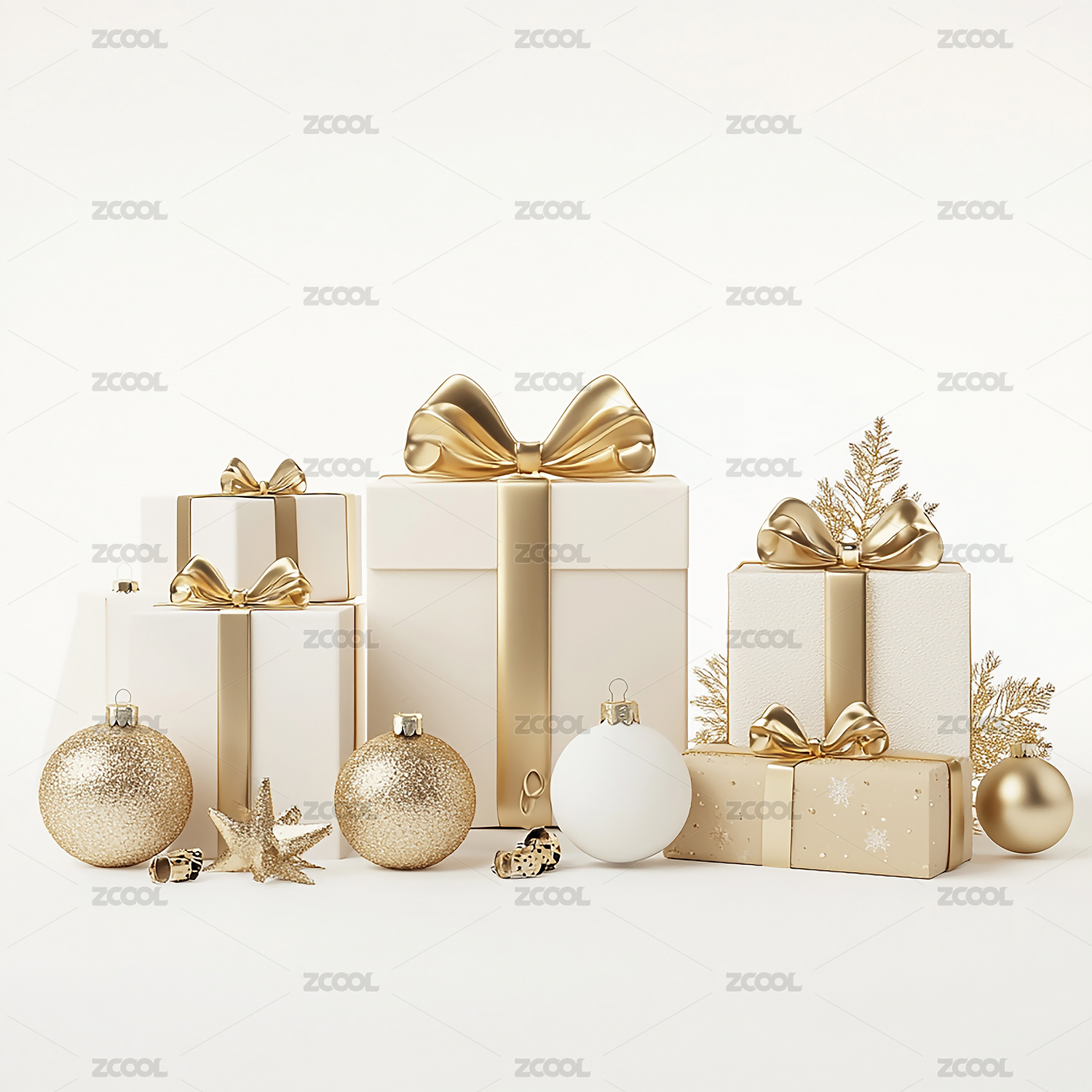 彩球和白色礼盒组合