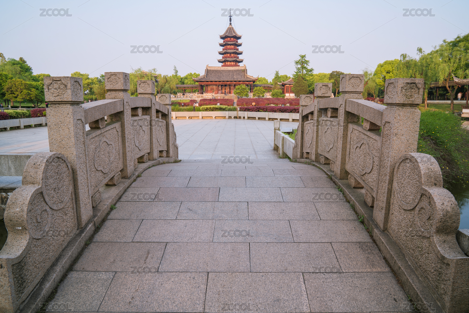 中国江苏省苏州市常熟阊门古城墙及七里山塘街风光