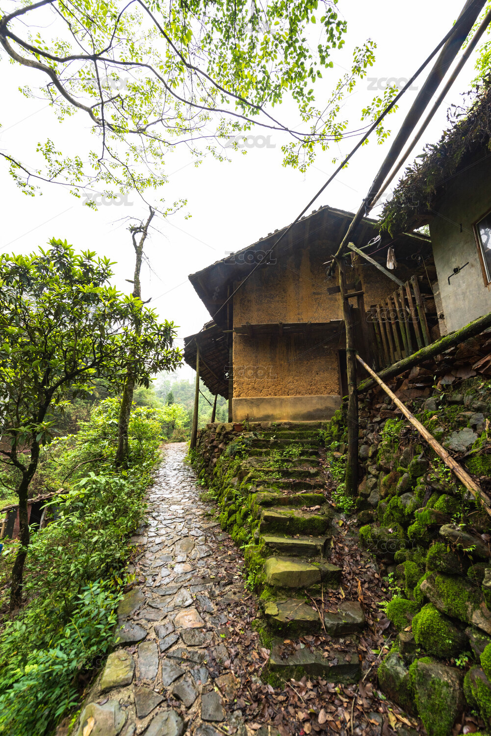 湖南湘西苗王寨的石板阶梯与石墙建筑