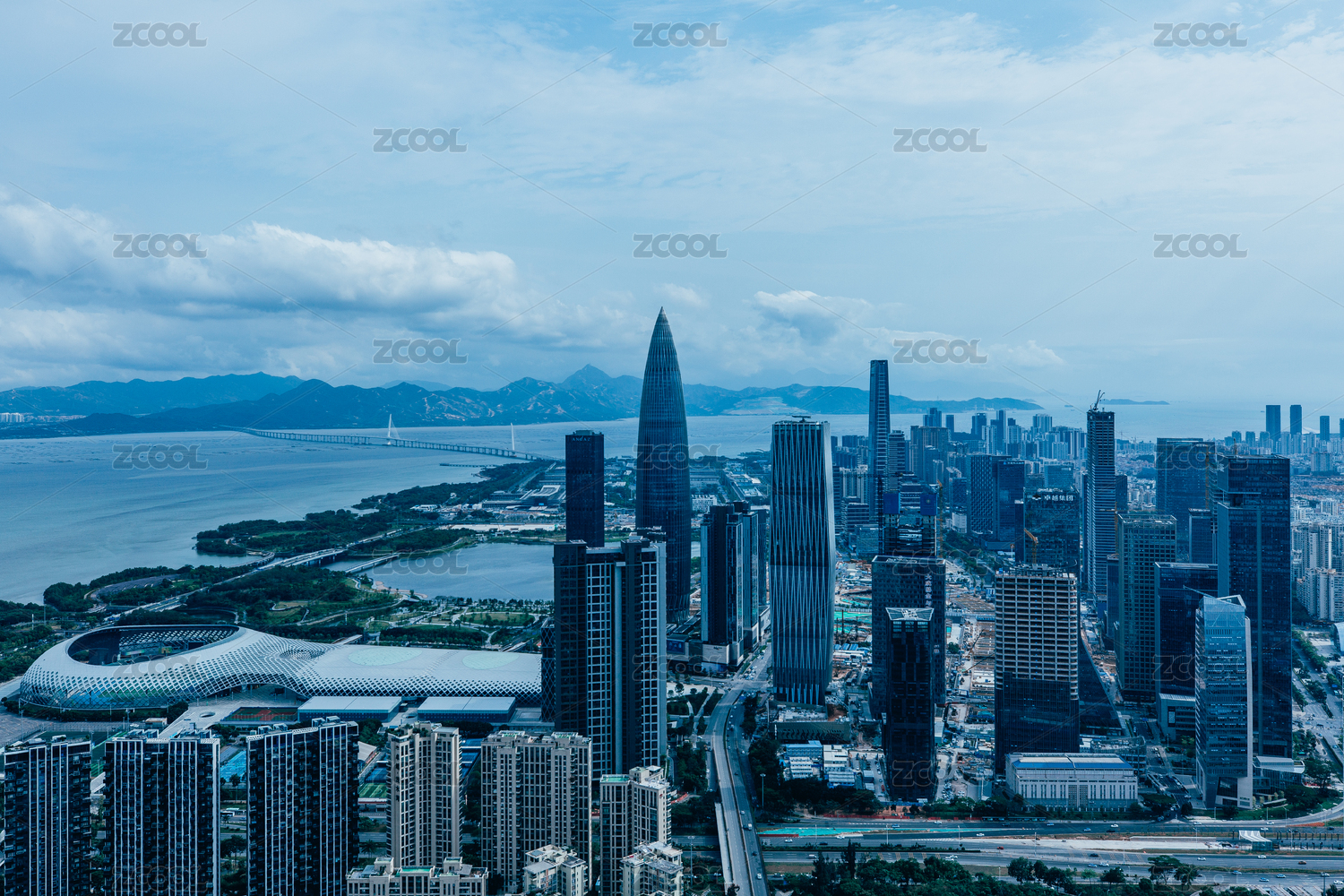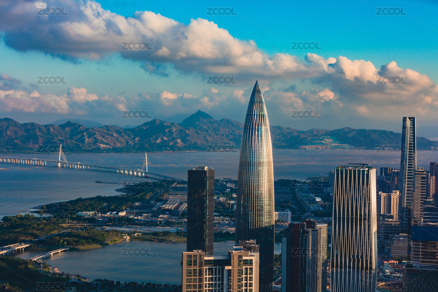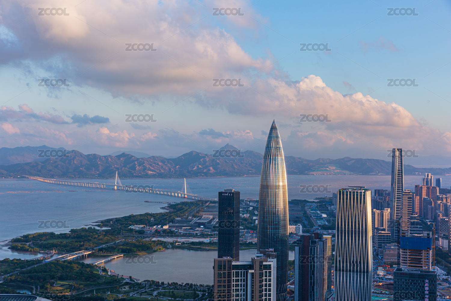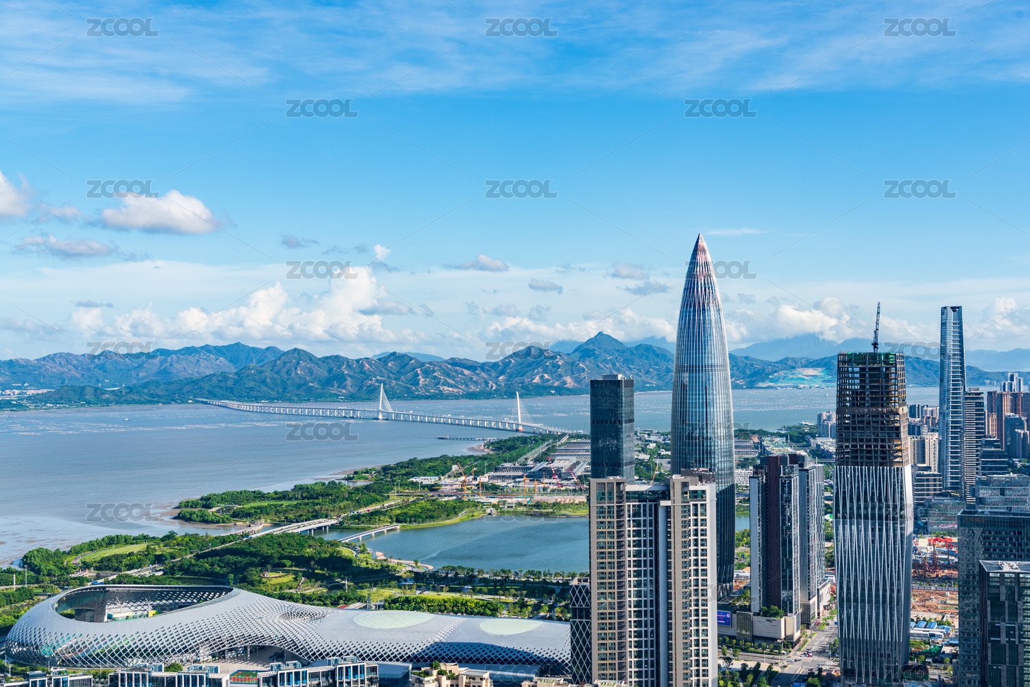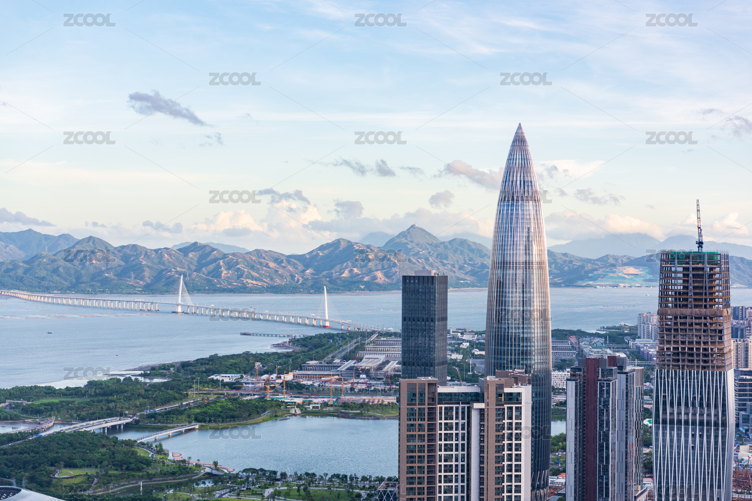 中国深圳大湾区风光之春笋和深圳湾大桥