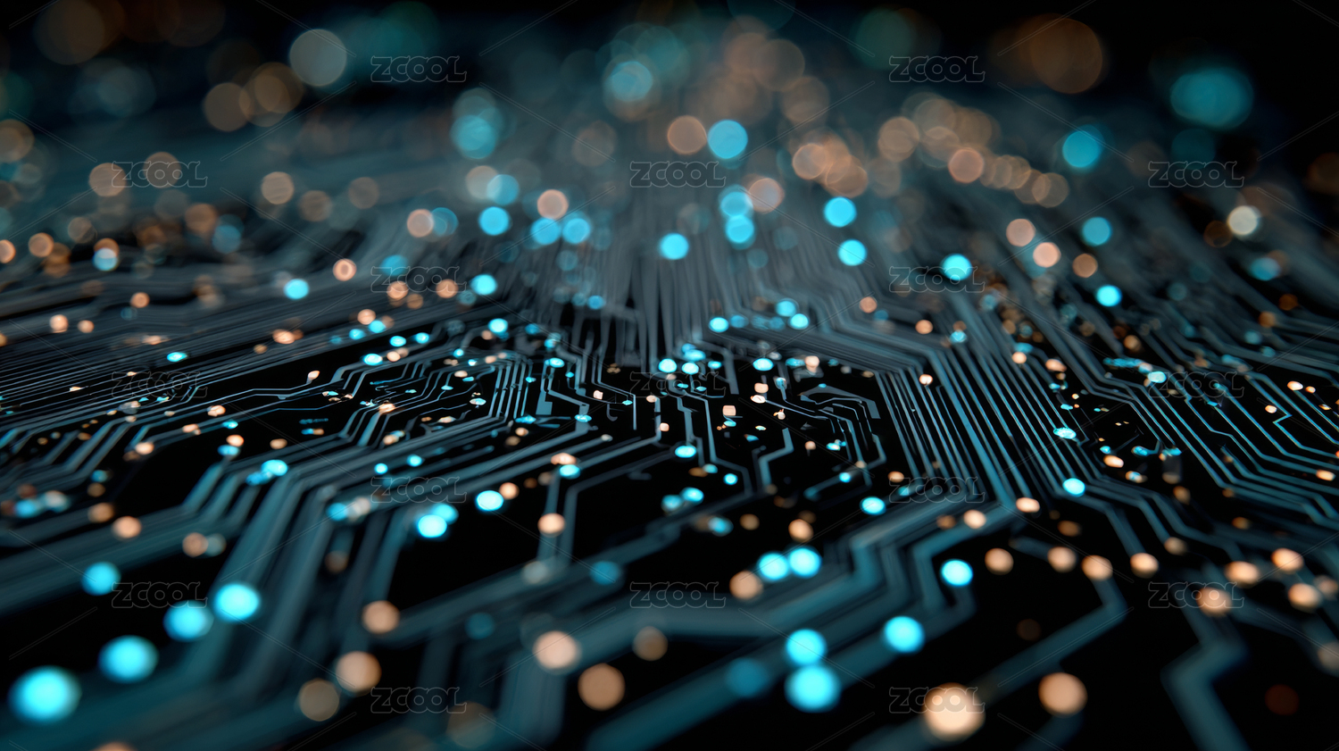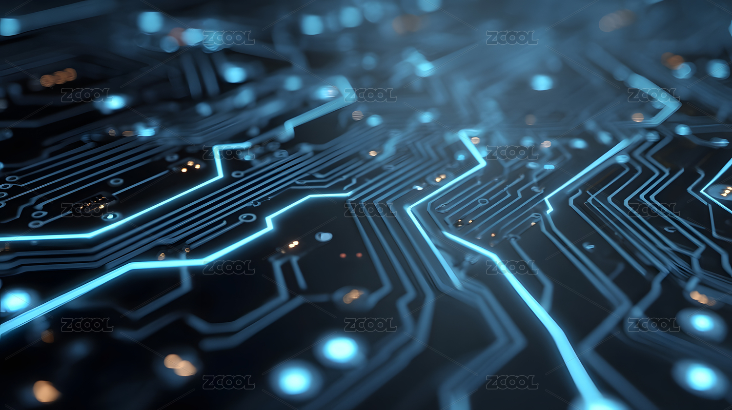 蓝色电路板特写画面