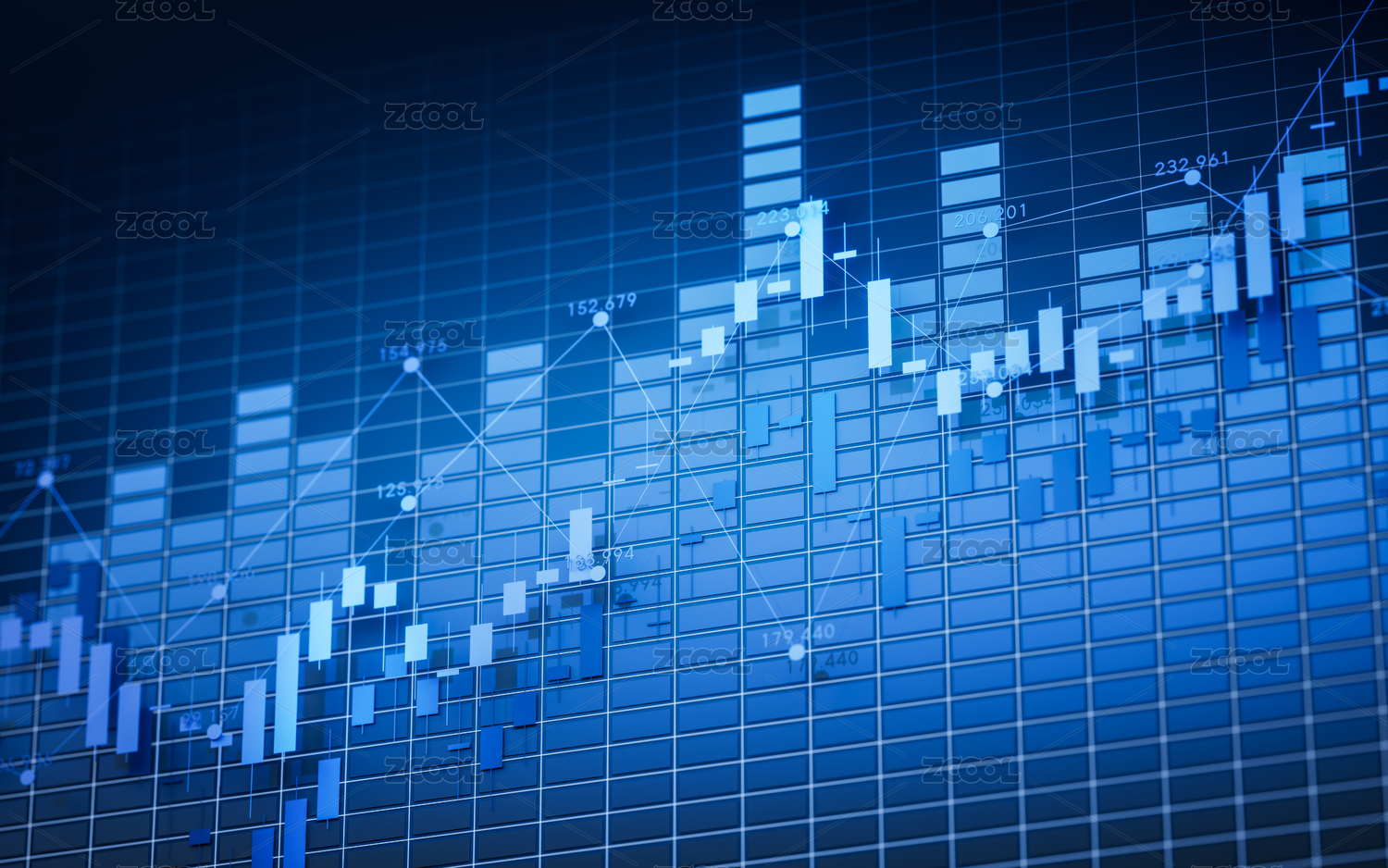 蓝色背景中股市涨跌线和波动箭头组成的金融类插图