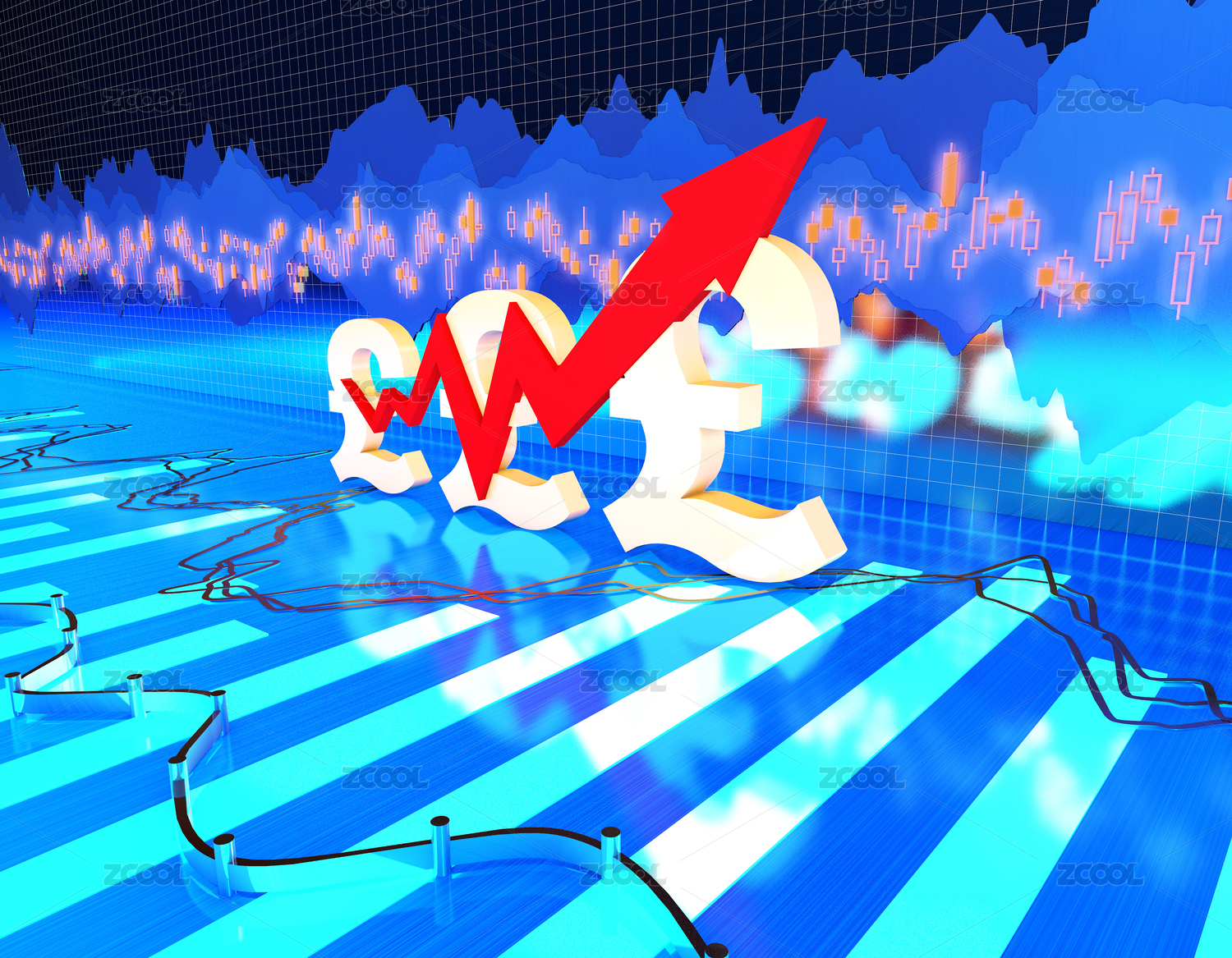 金融股市经济统计图表,货币升值与经济发展成功,英镑货币符号