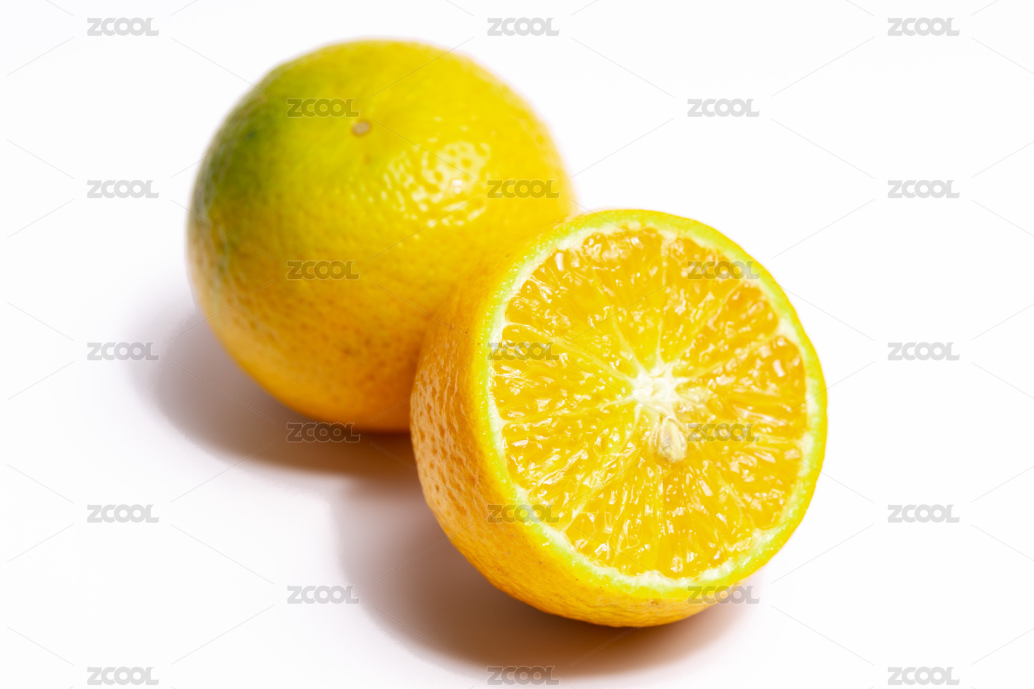 新鲜切开的橙子水果白底