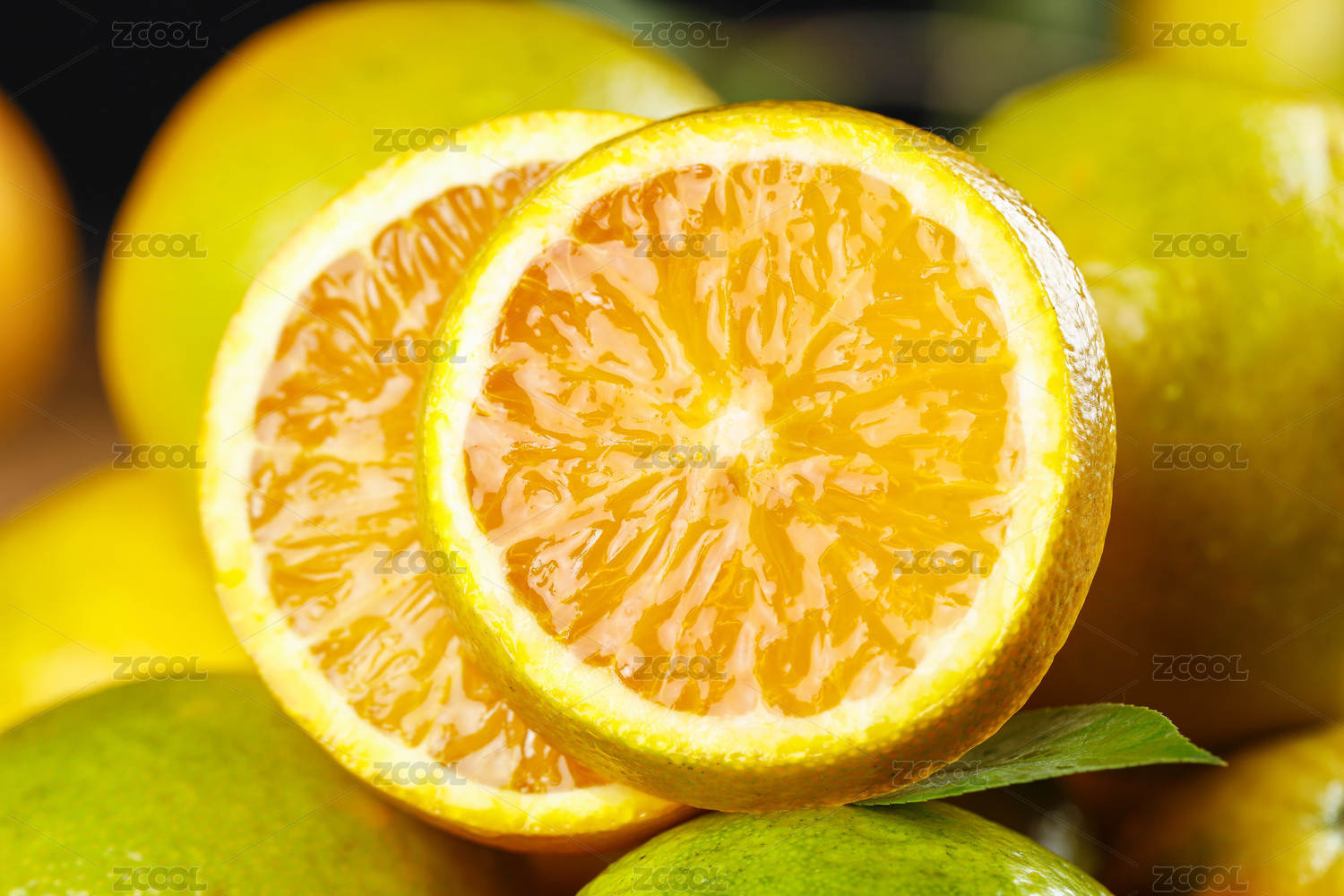 新鲜多汁的橙子横切面特写