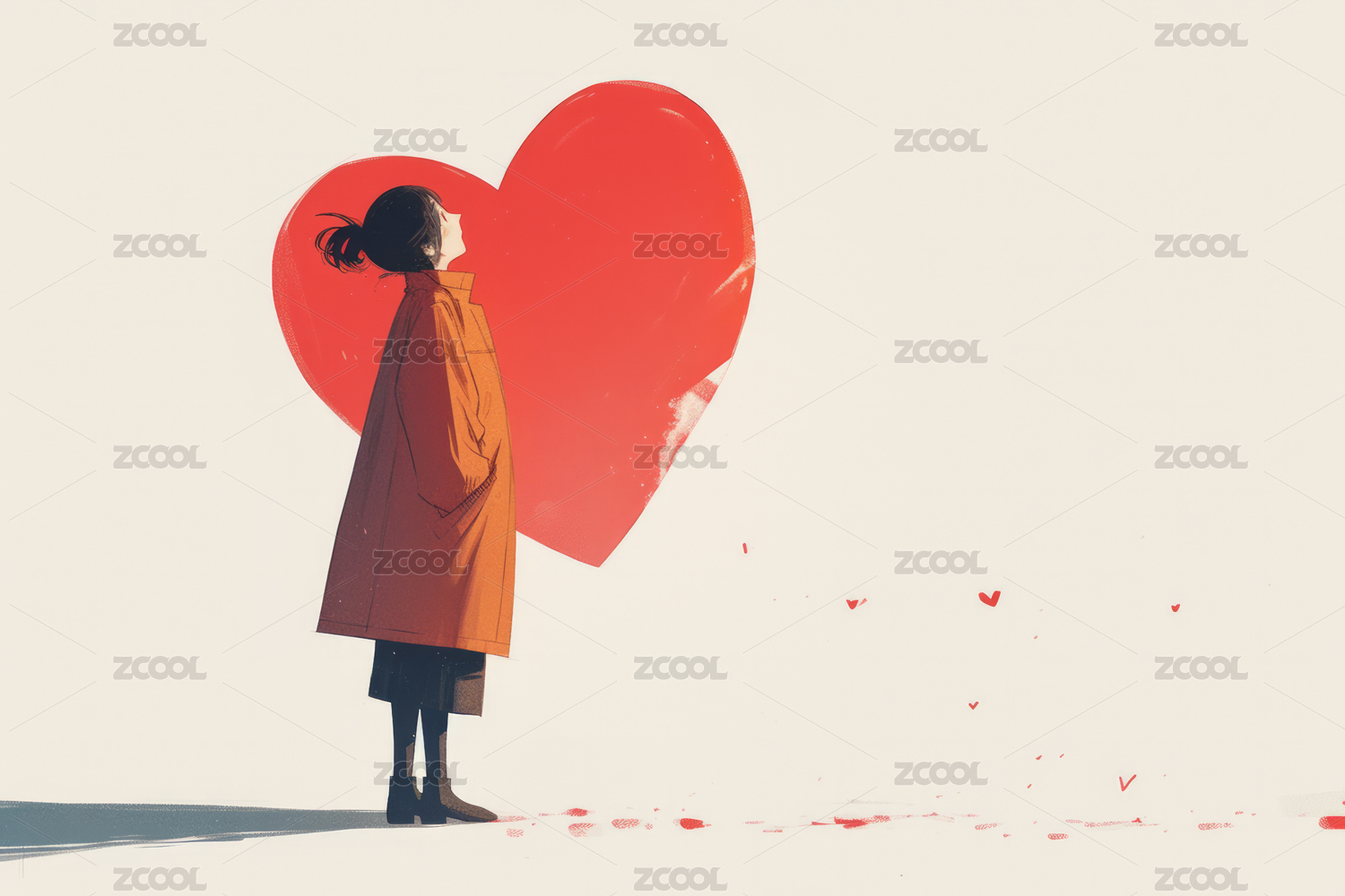 握住红心的人的艺术描绘 人物在蓝色背景下