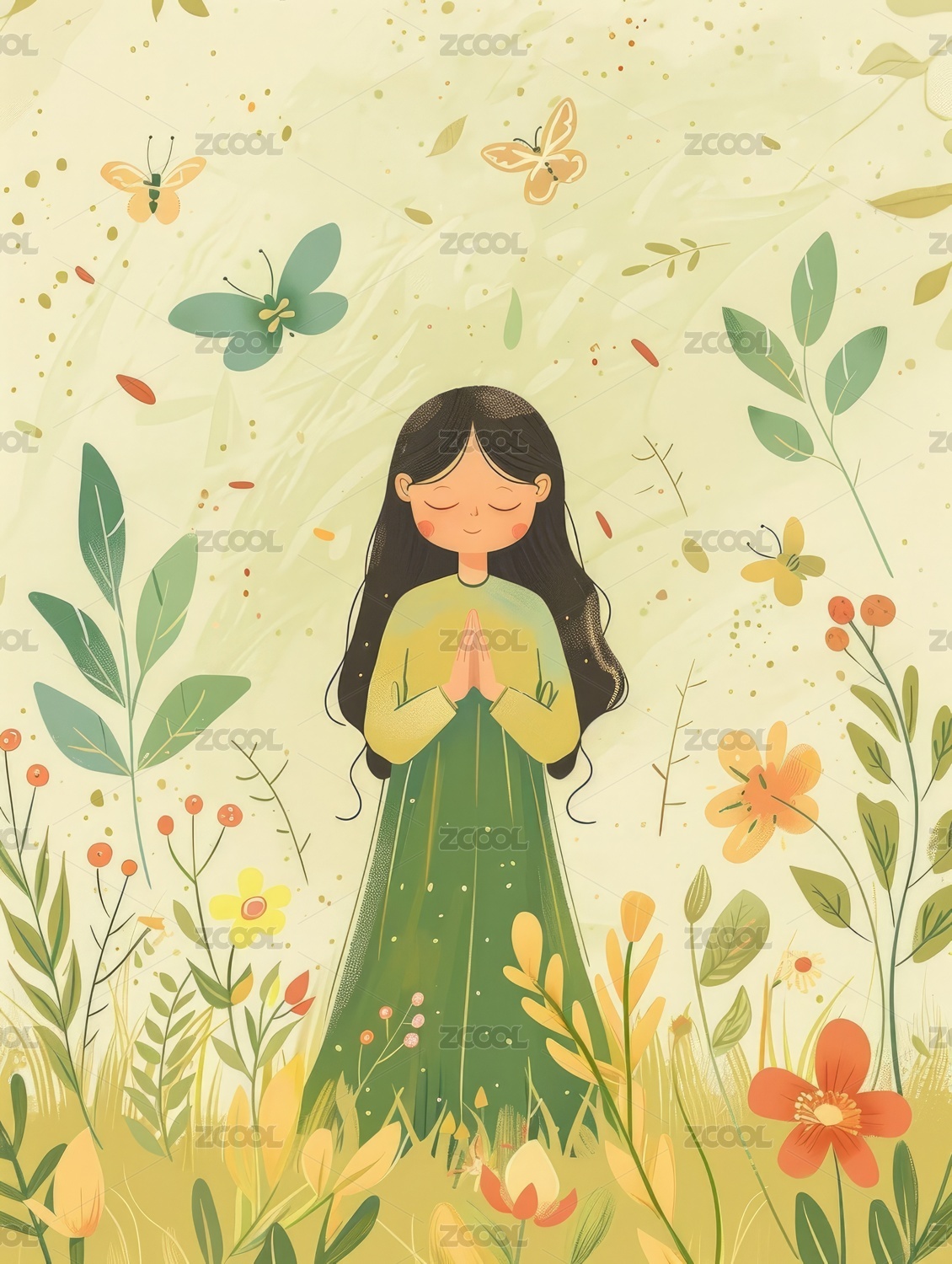 女孩,绿色,蝴蝶,人物,插画,性格,测试,心理,类型