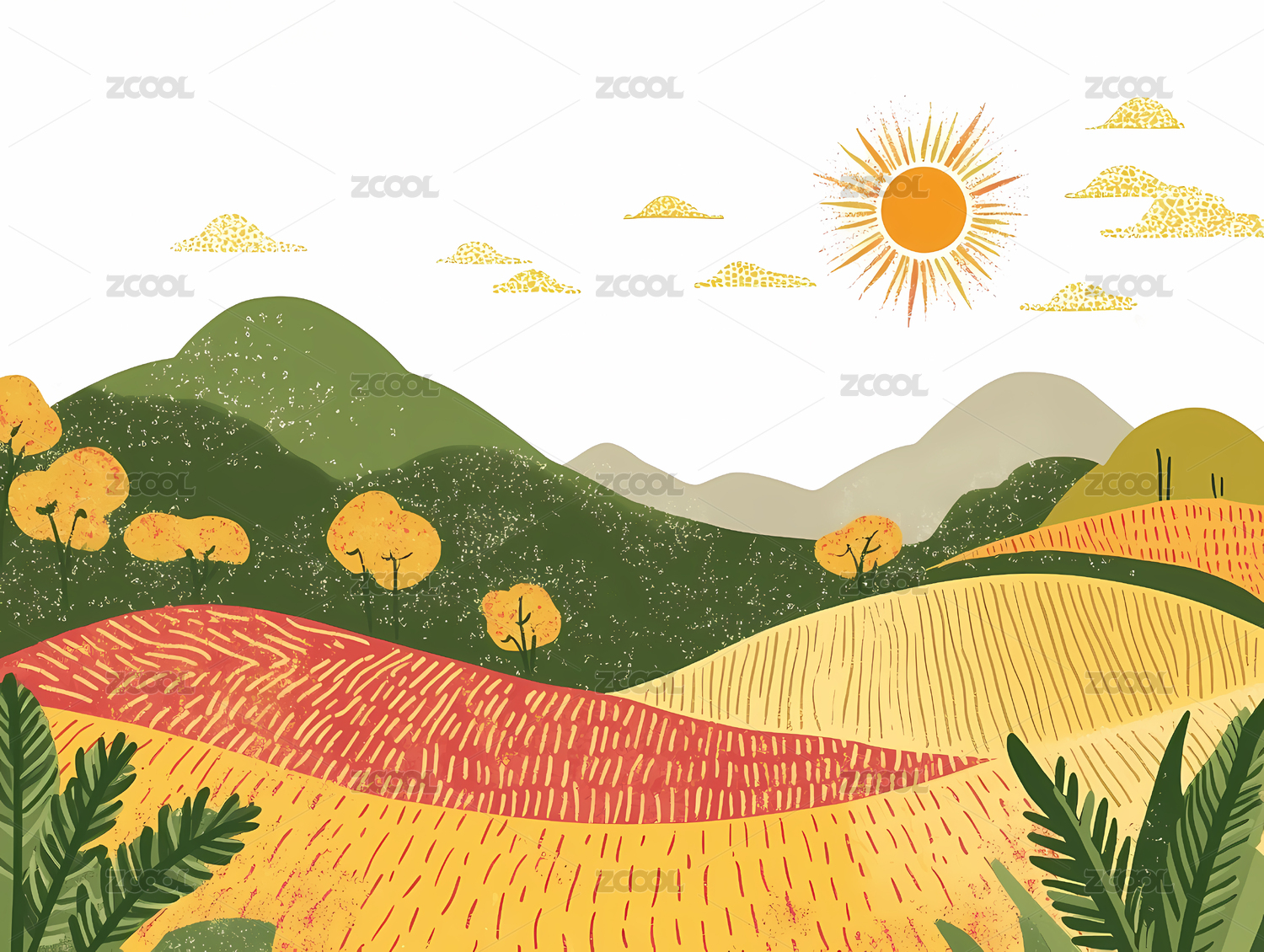 秋天树林山丘风景插画