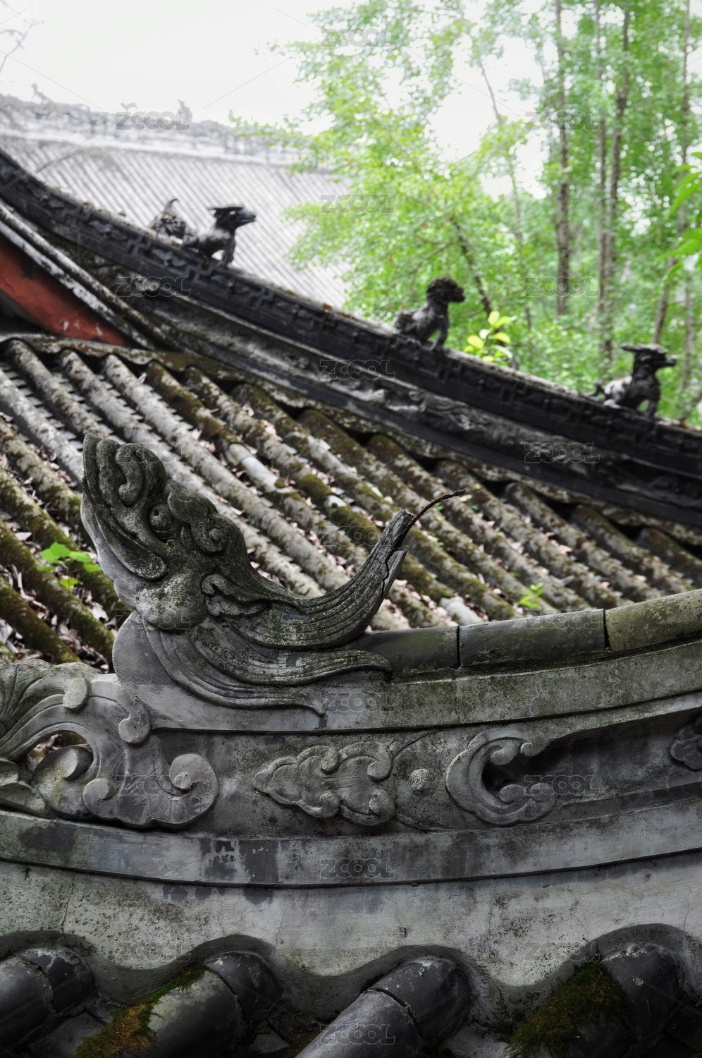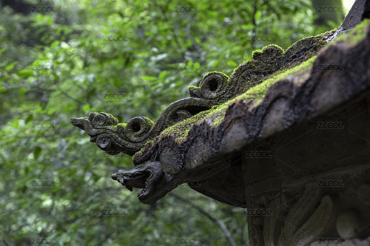 古建瓦当青苔古韵中式建筑屋檐东方禅意意境