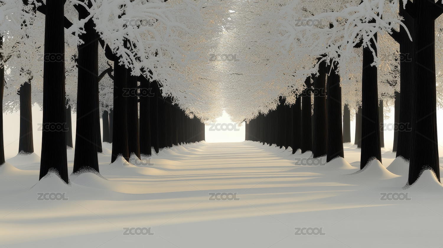 雪地树林雪景牌楼冬季3D插画