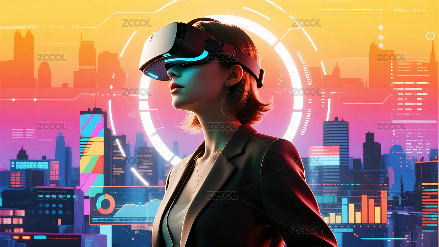 虚拟现实技术VR眼镜科技感元宇宙概念插画