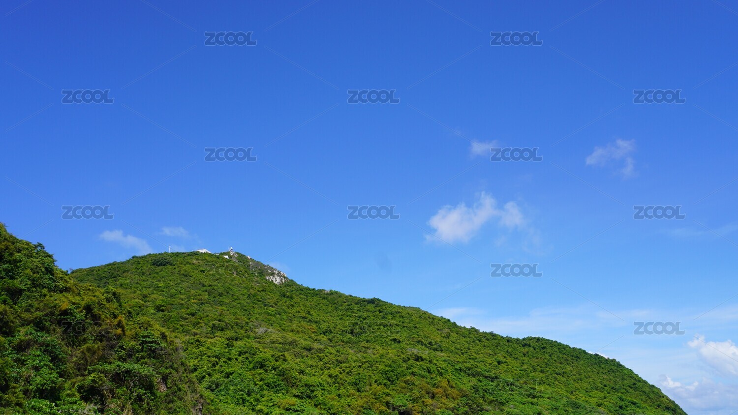蓝天白云下的山峦