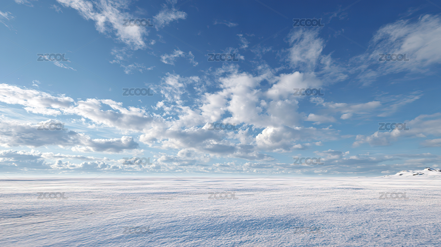 雪原蓝天白云景象