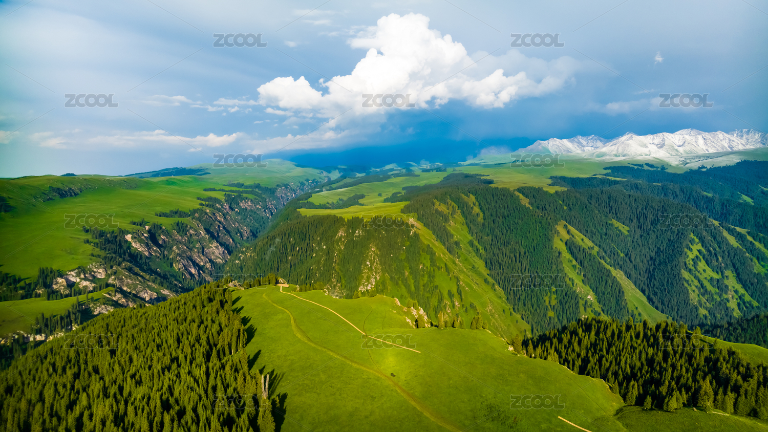 新疆伊犁喀拉峻草原森林蓝天自然风光航拍