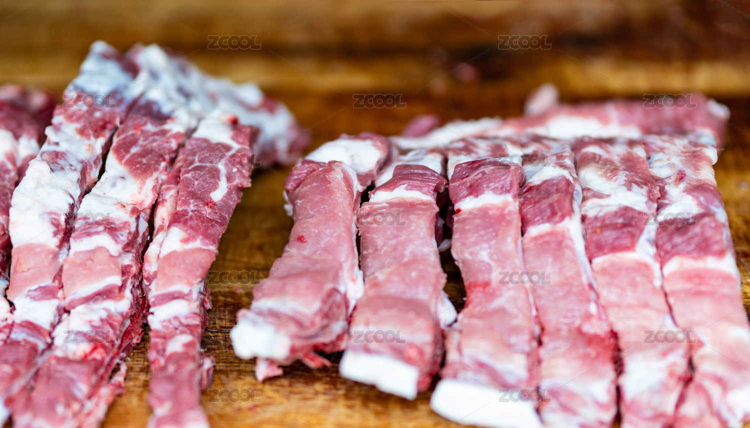 市场上售卖的新鲜猪肉排骨肋骨食材