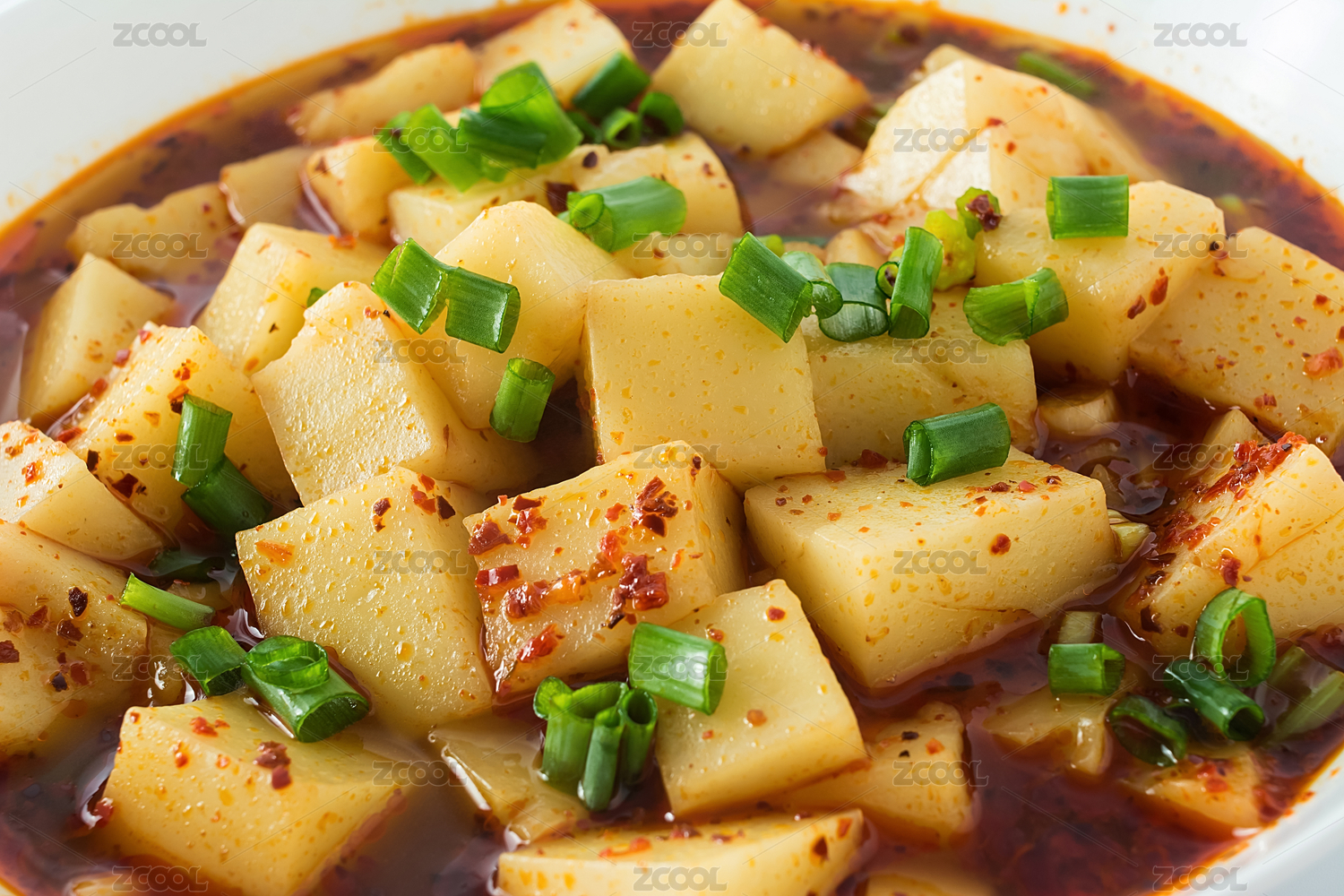 餐桌上的一碟中国家常菜豆腐烧肉沫