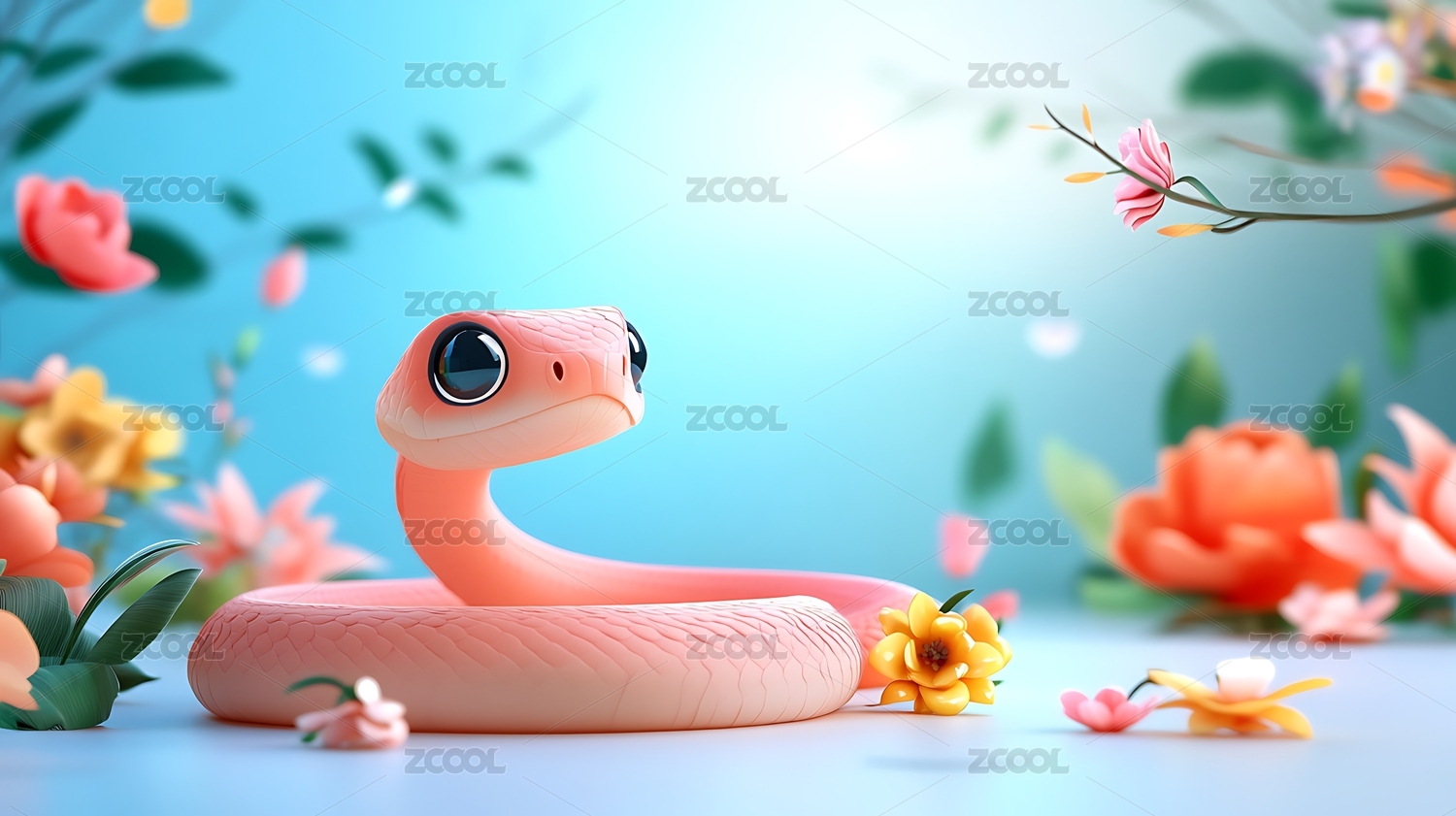 3d卡通可爱十二生肖蛇年生肖蛇设计