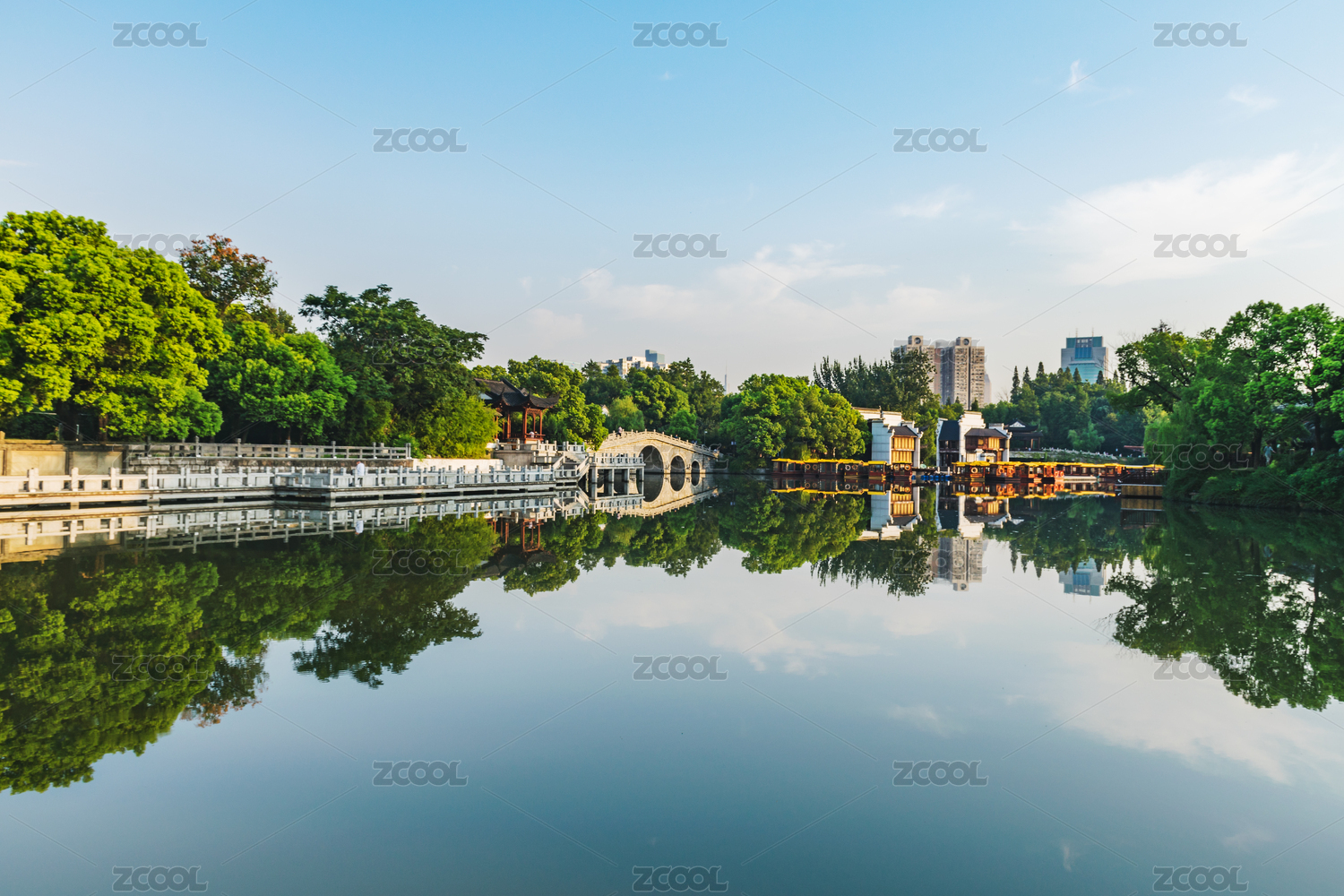 南宁狮山公园湖泊树林景观与夕阳晚霞