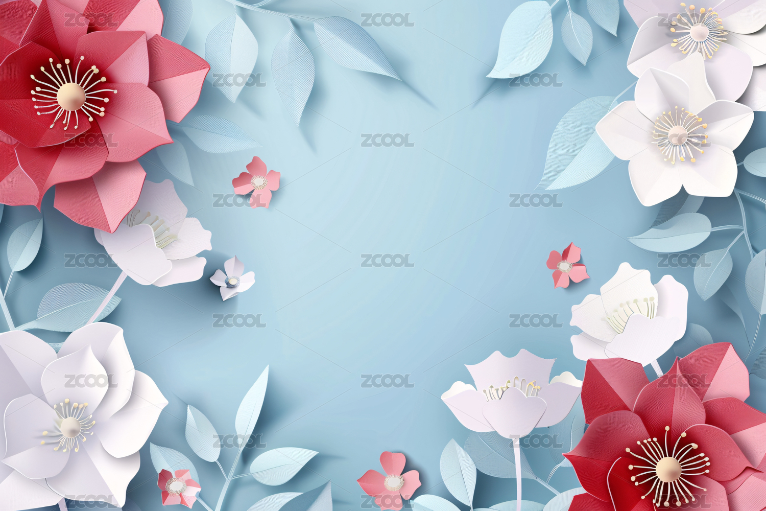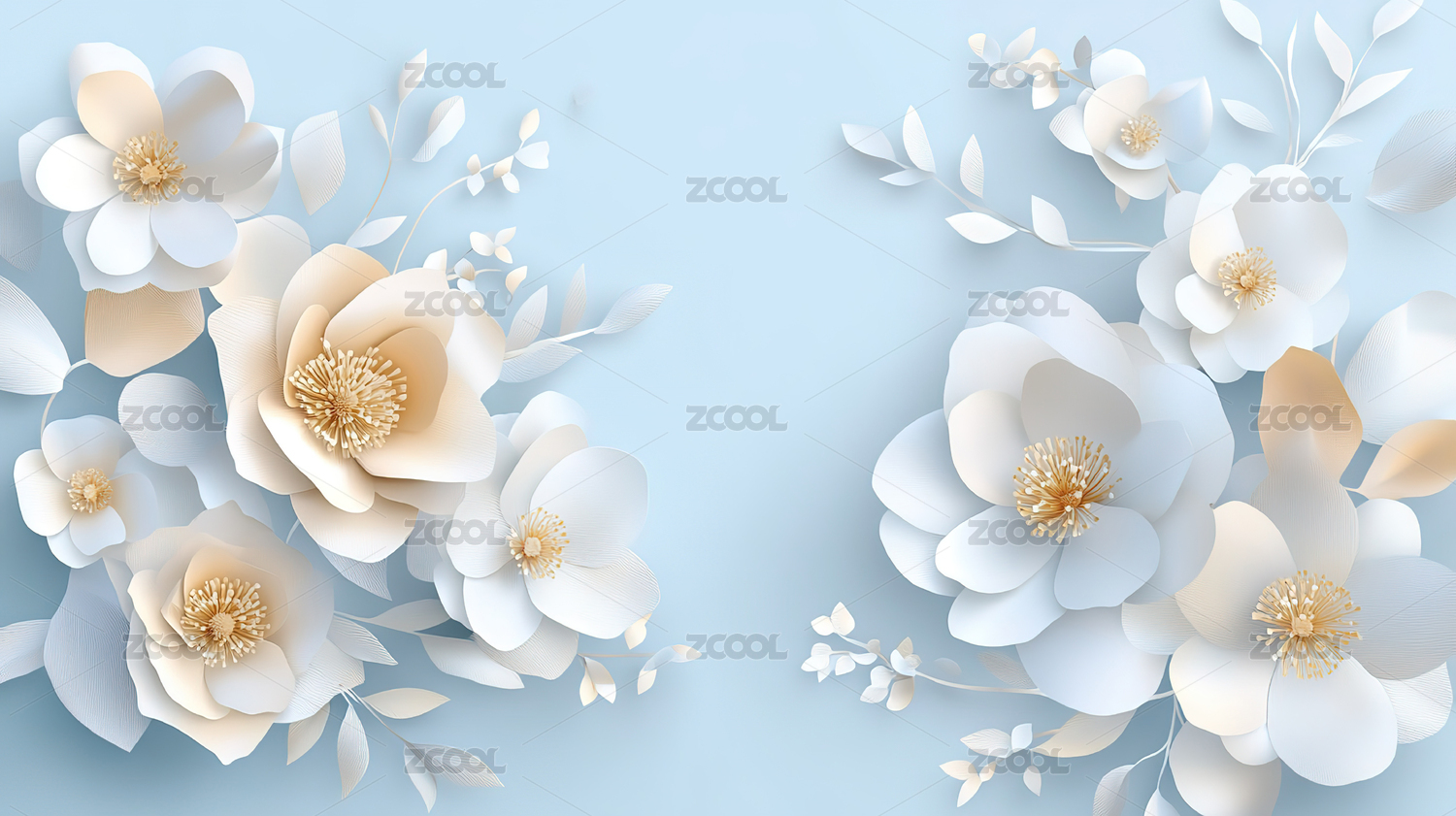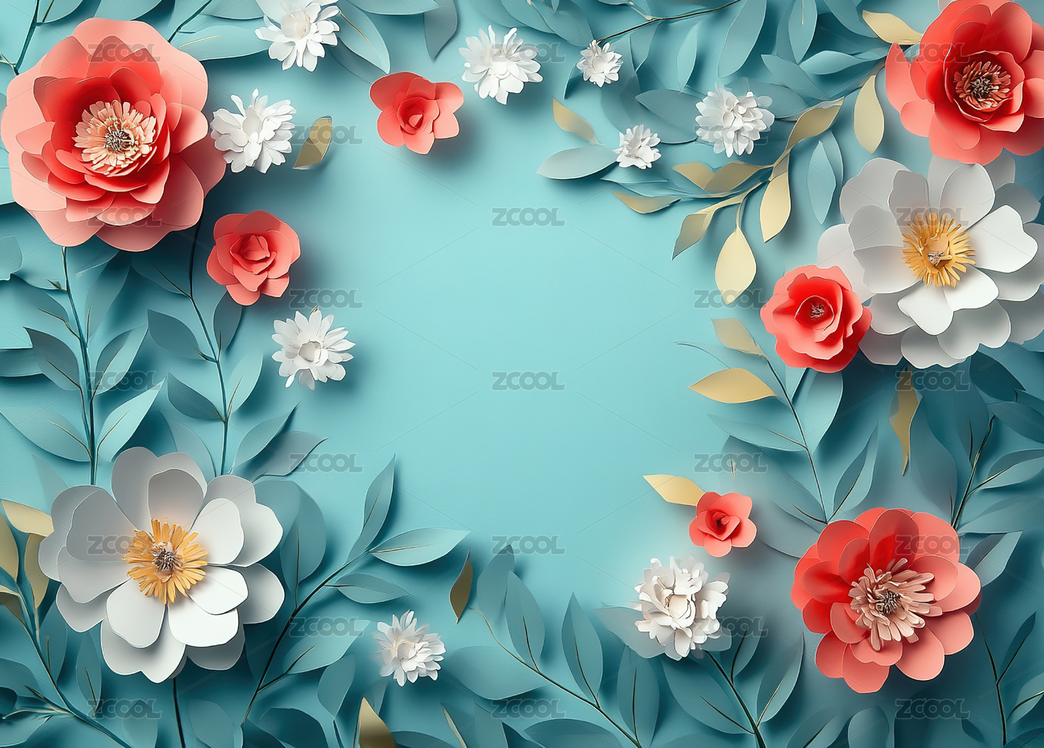 3D渲染的各种剪影风格花卉,春天剪纸艺术