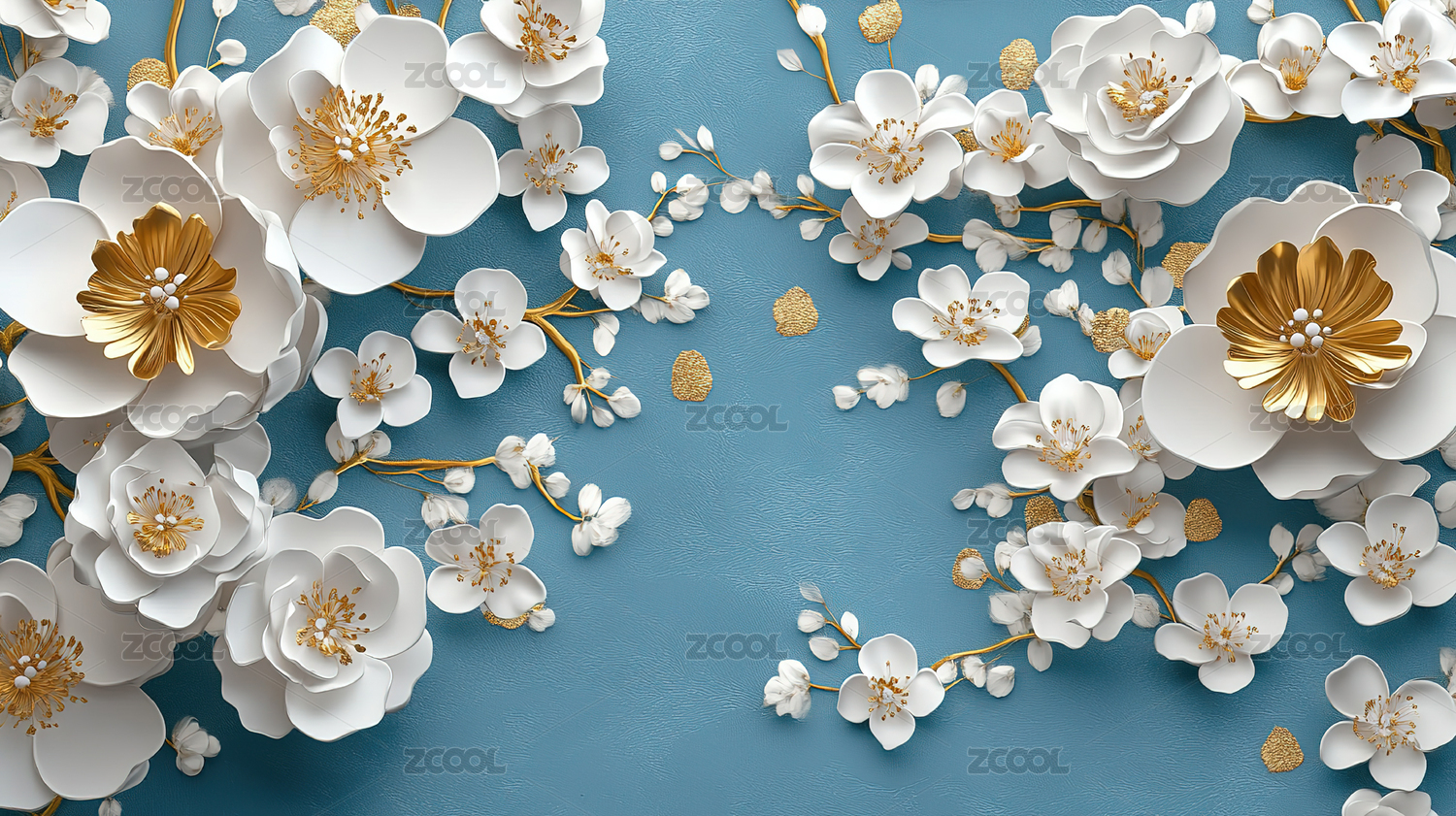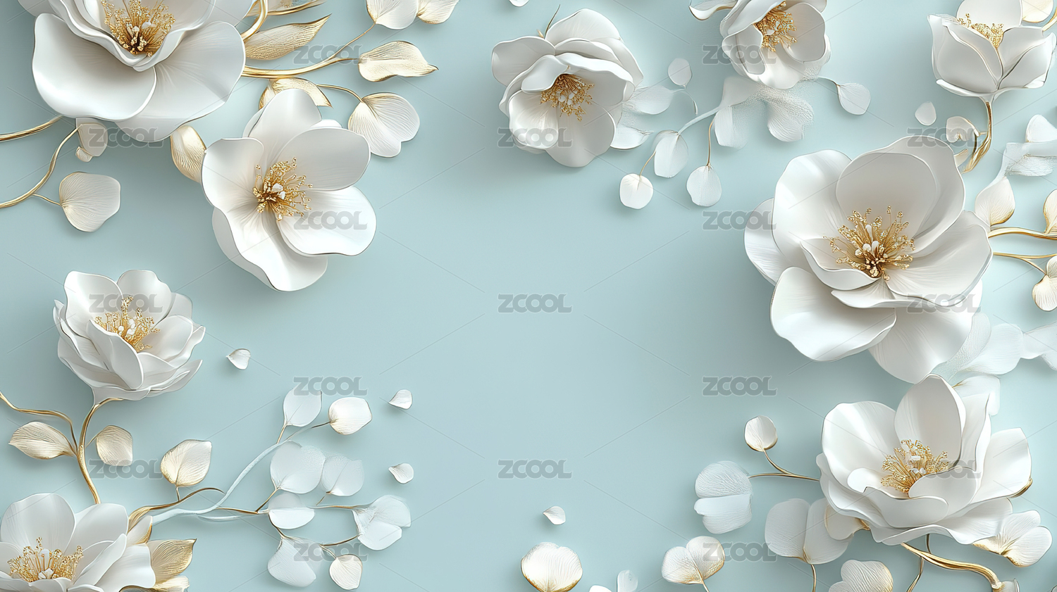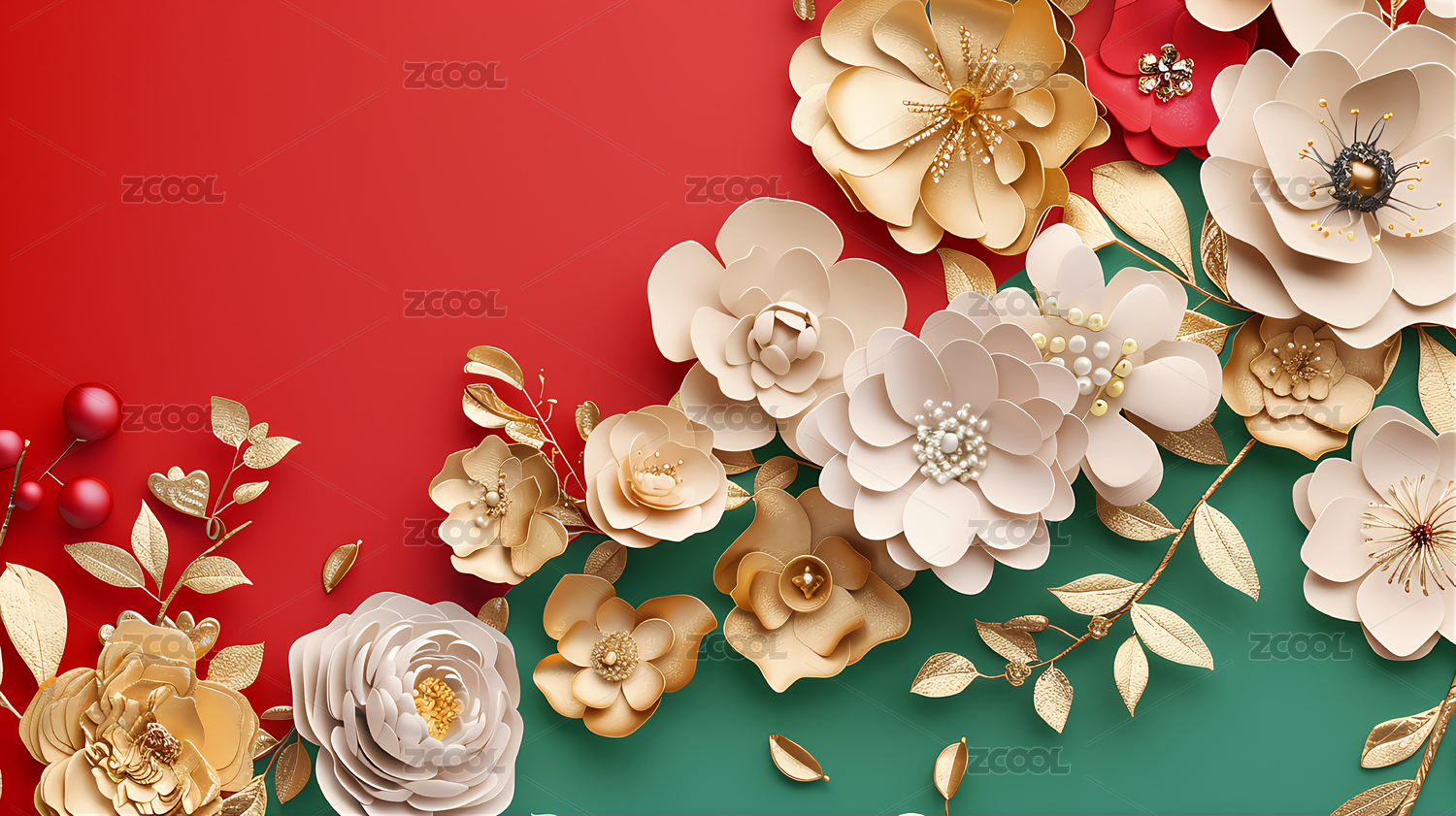3D渲染的各种剪影风格花卉,春天剪纸艺术
