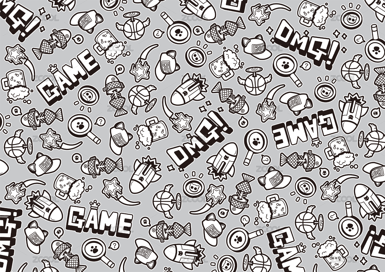 卡哇伊平铺-卡通图案拼贴-包装延展素材