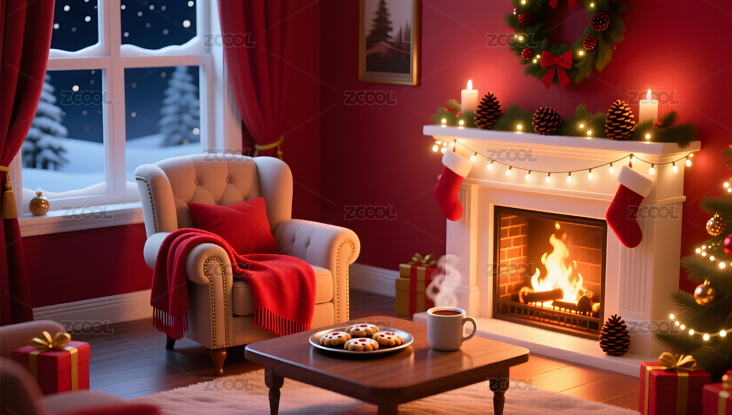 温暖,冬季,插画,冬日,壁炉,篝火,沙发,圣诞树,礼物,圣诞袜