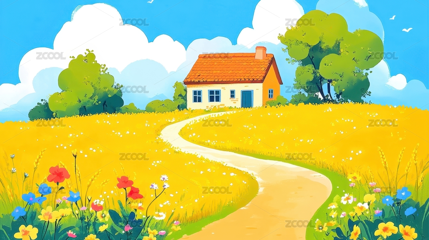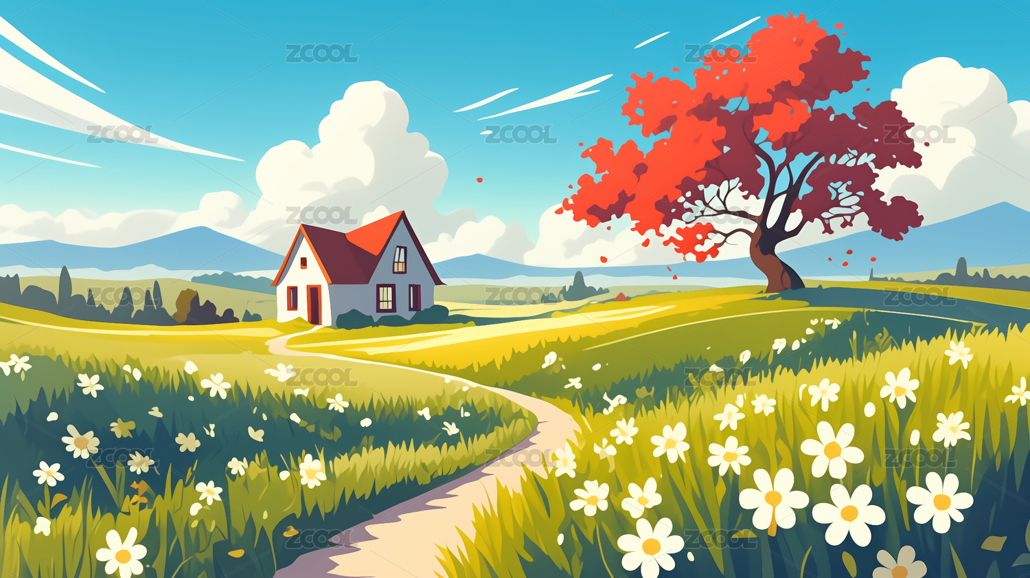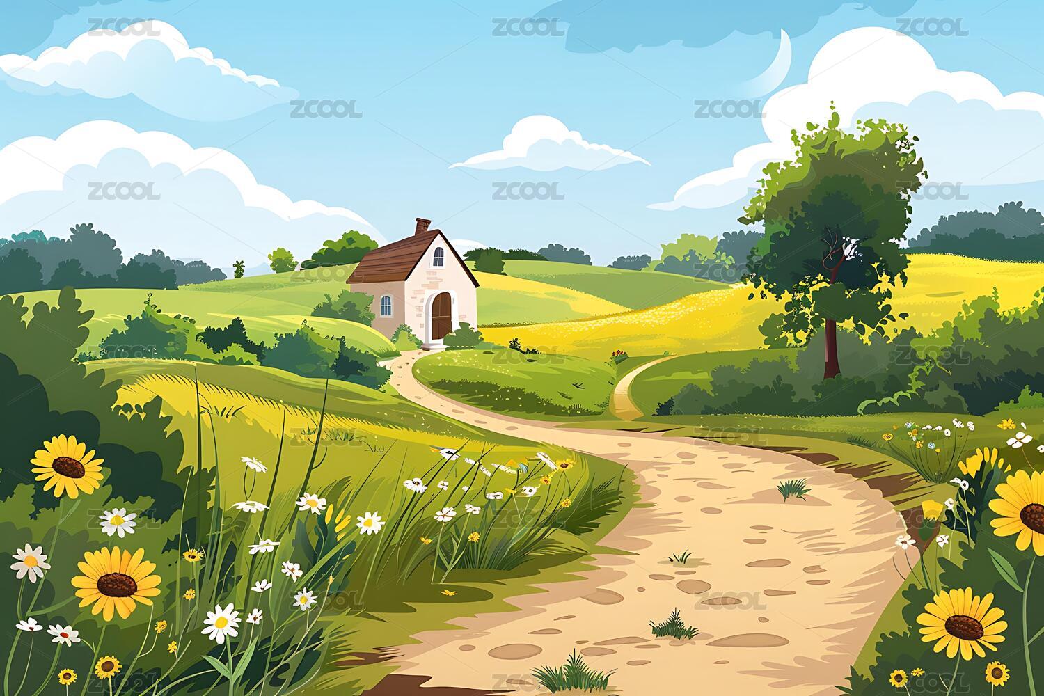立秋节气户外旅行自然风景处暑卡通唯美插画