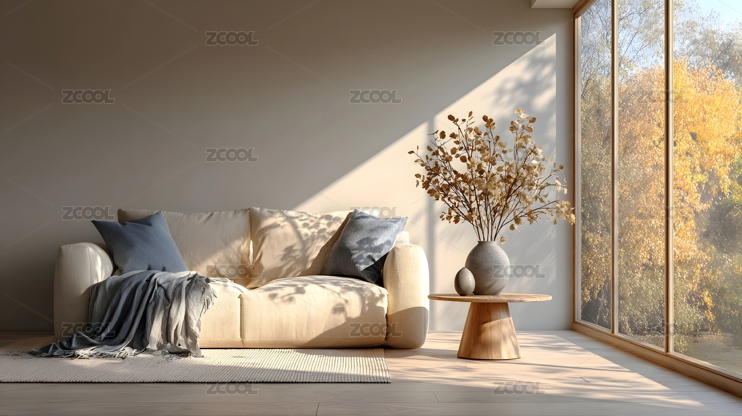 秋日阳光下的现代客厅