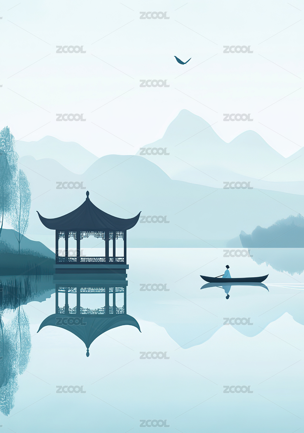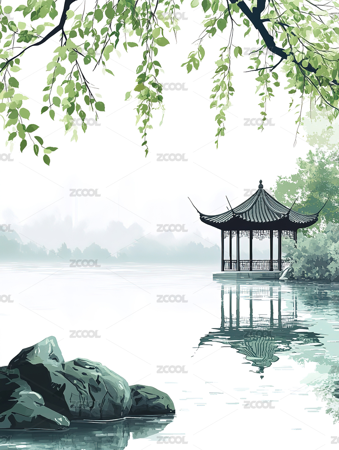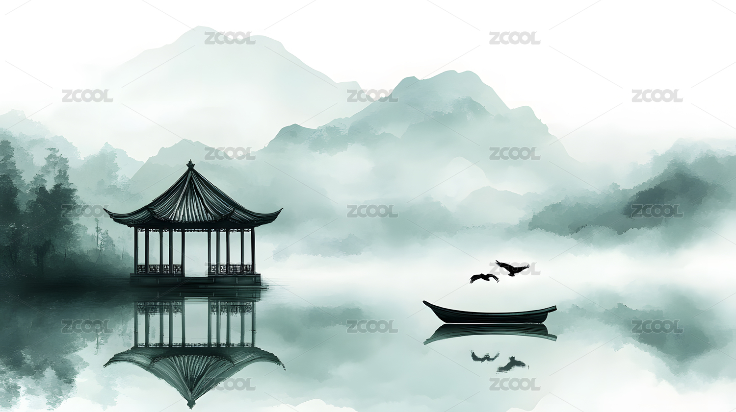 水墨江南山水亭台