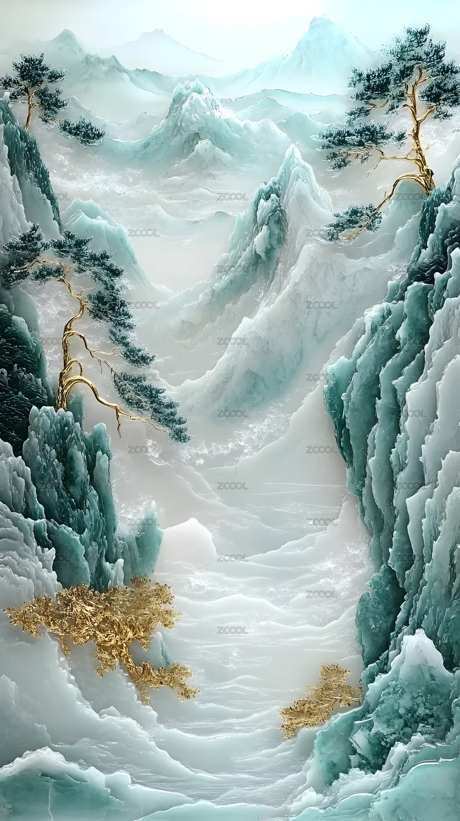 松树,山峰,云雾,白色,纹理,禅意,宁静,山峦,树木,远山