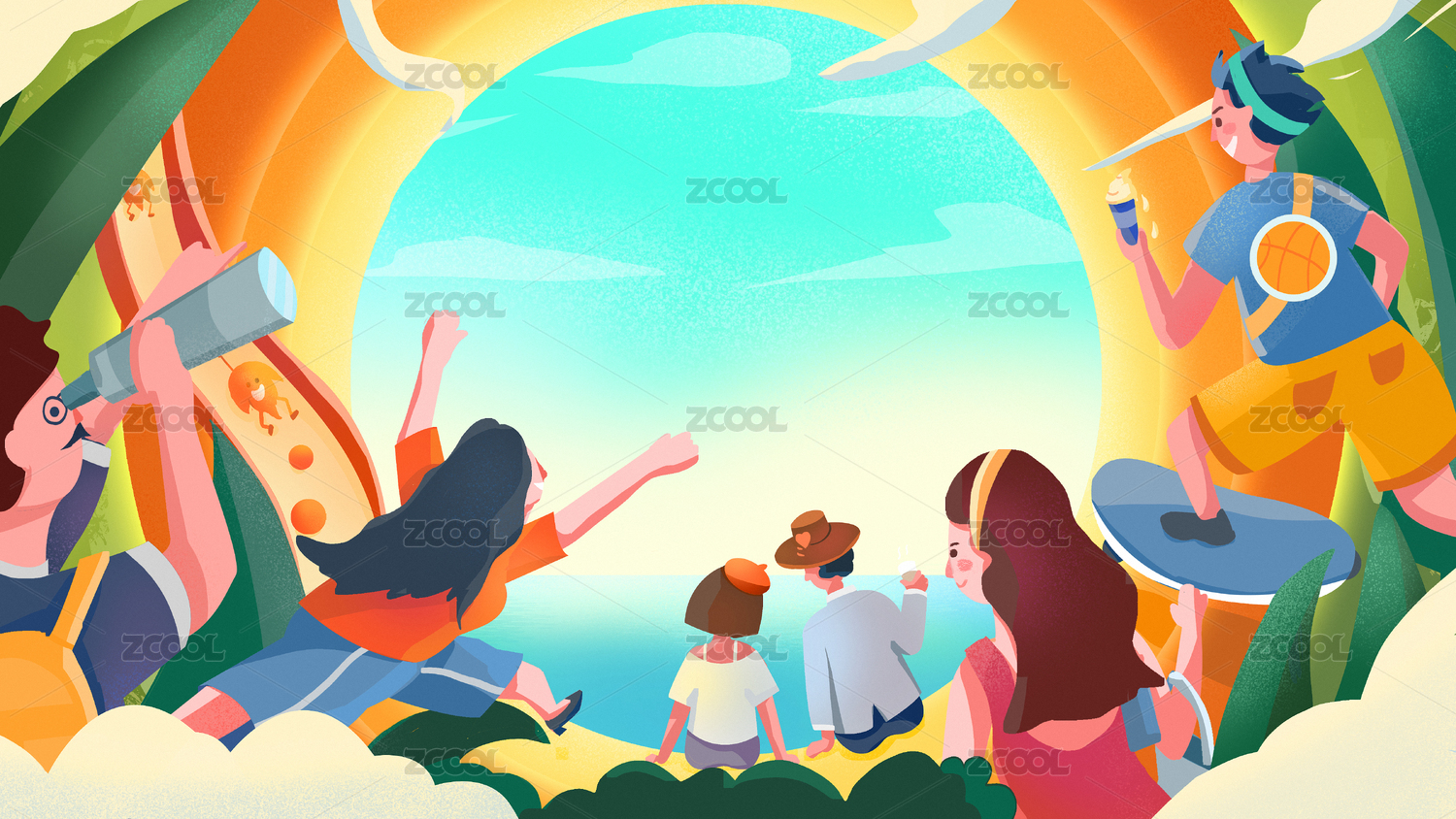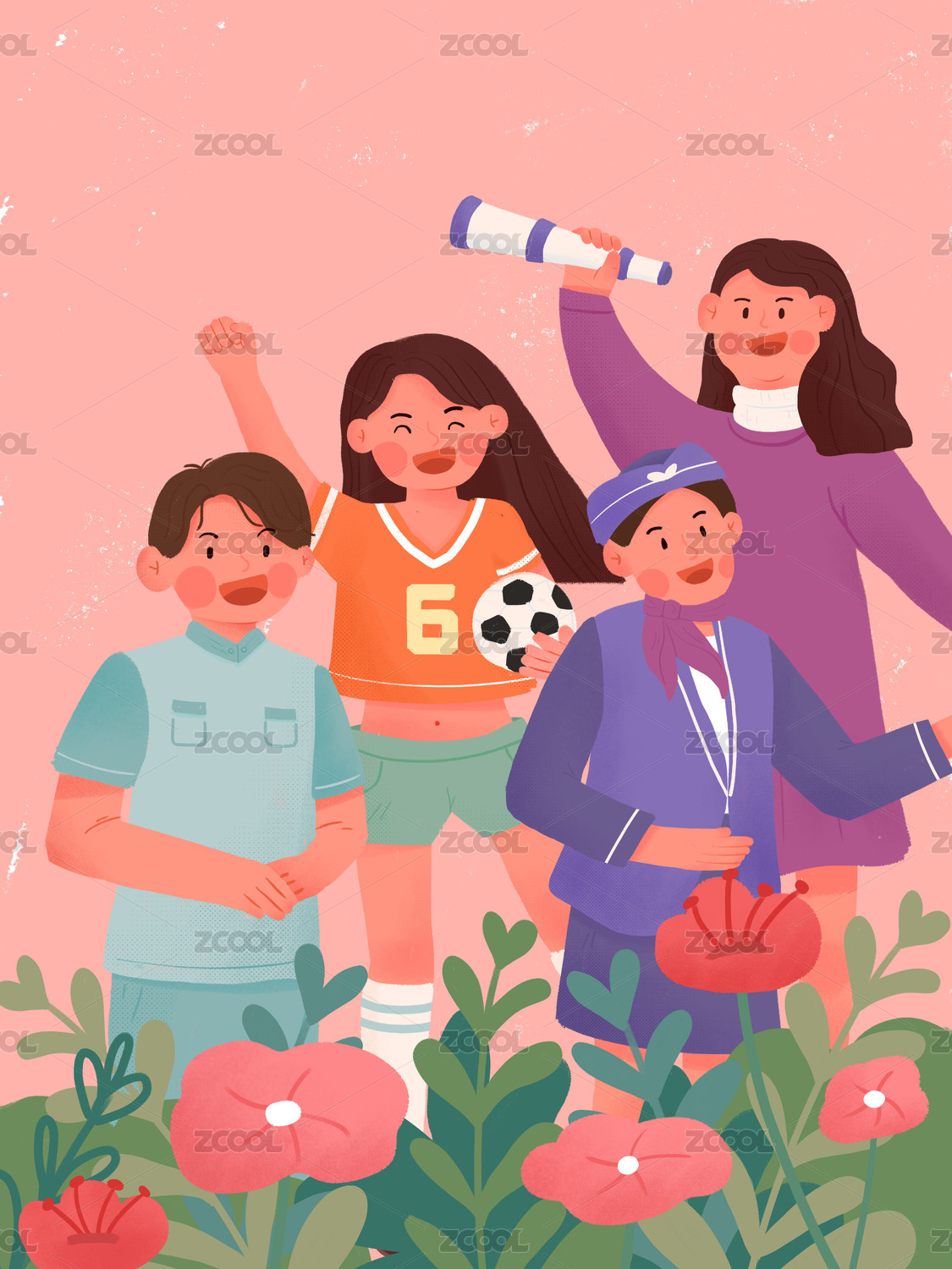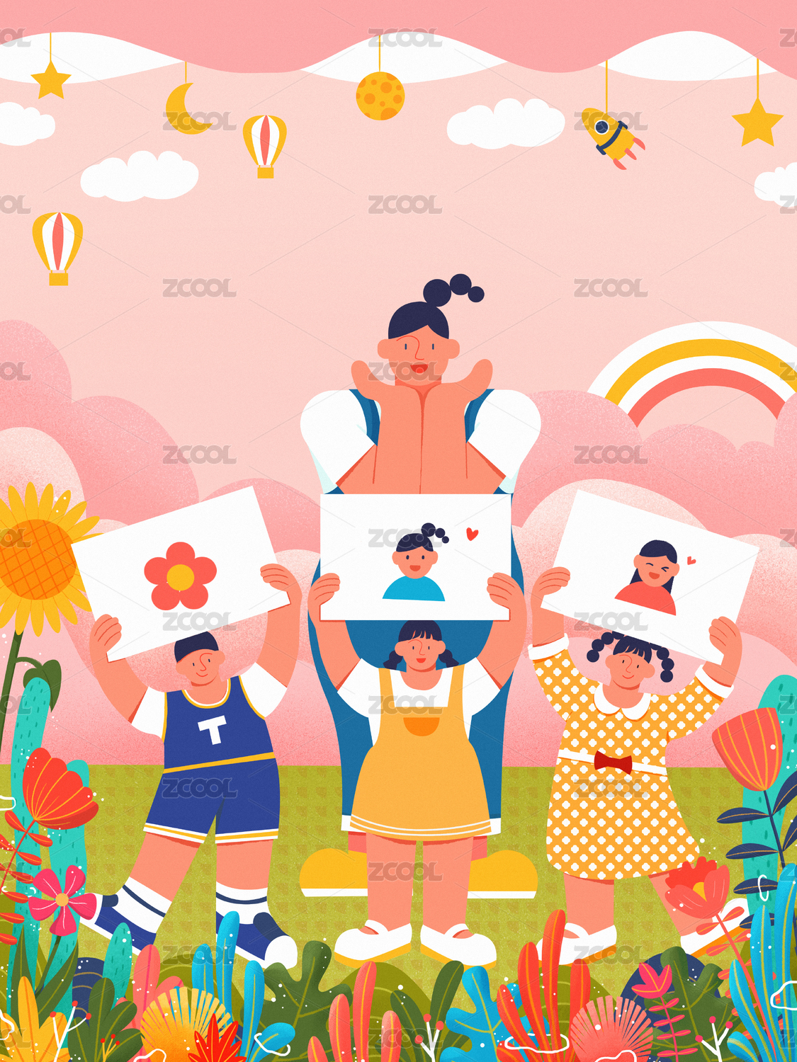六一儿童节读书开学荡秋千竖版无字矢量插画