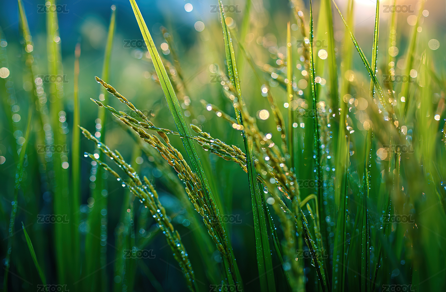 晨露中的稻穗特写