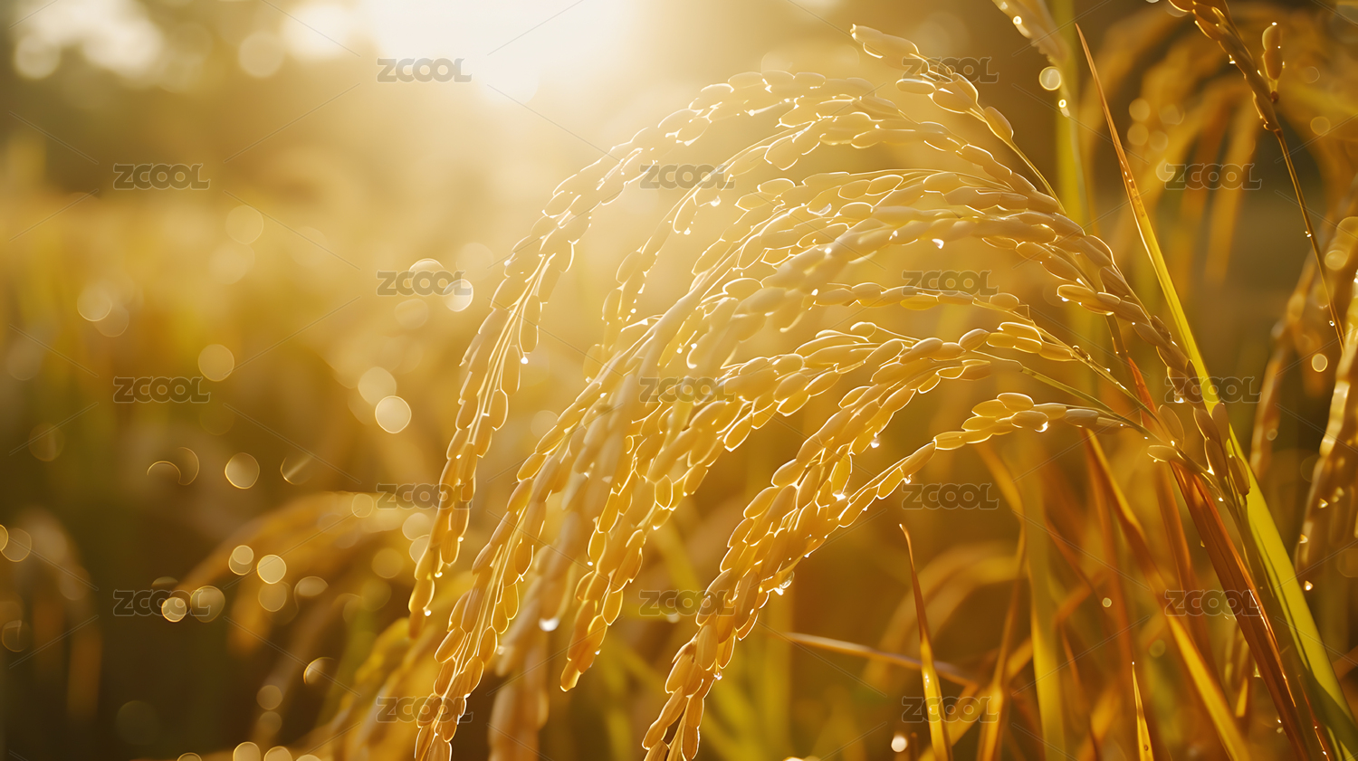 金黄稻田阳光洒照
