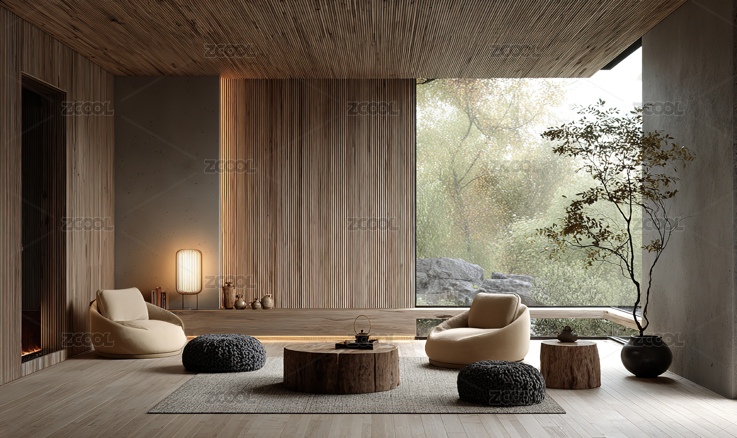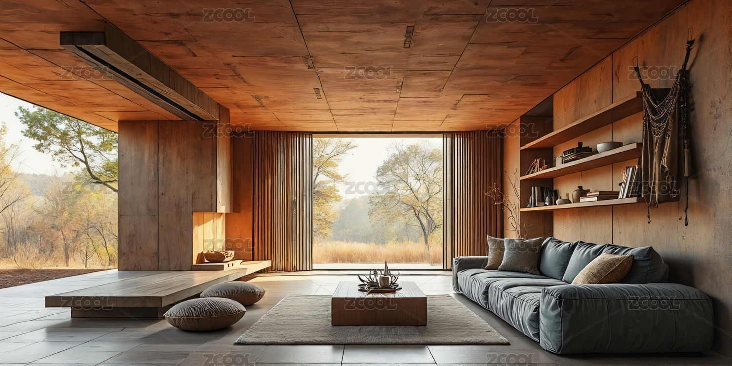 大窗户,植物,盆栽,艺术品,开放空间,温暖,木质地板,室内设计,高级感,舒适
