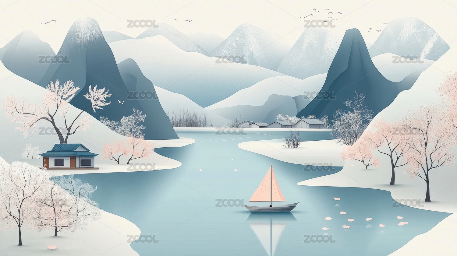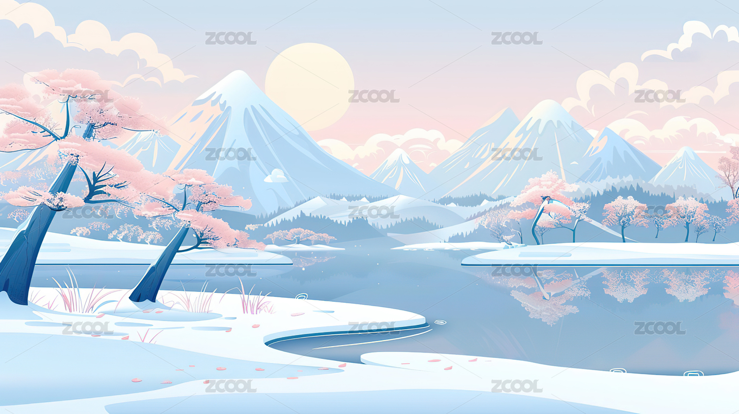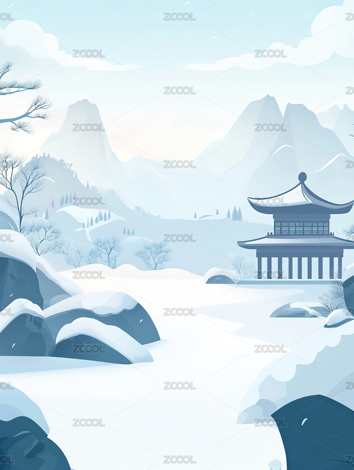 冬季古风山水雪景插画