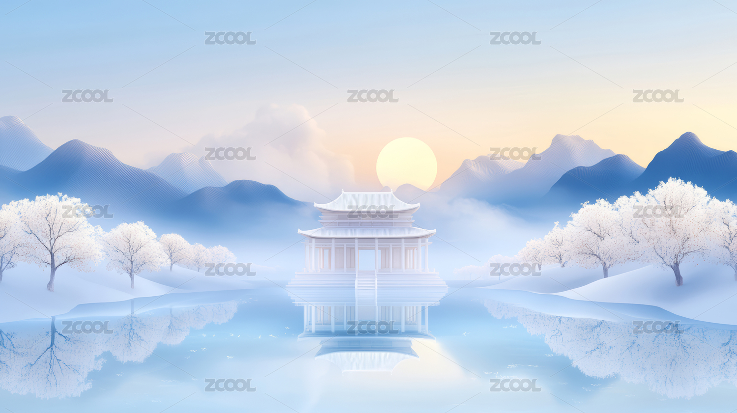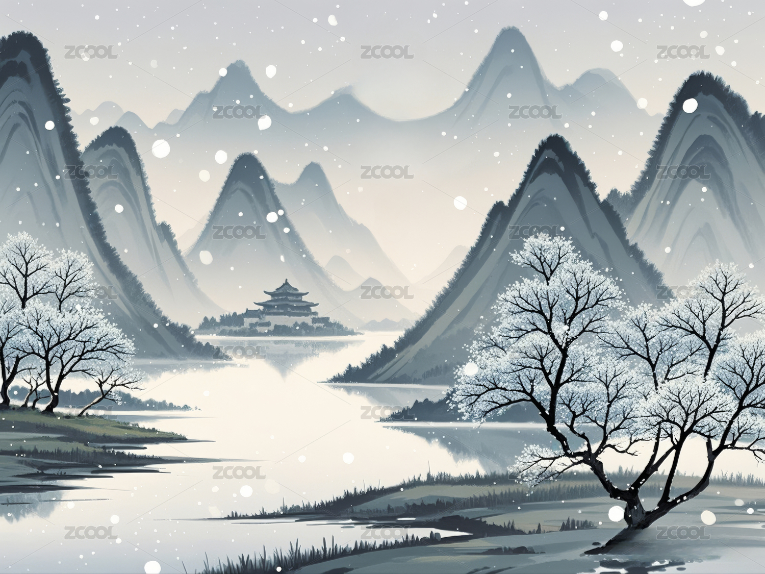 山水画雪景